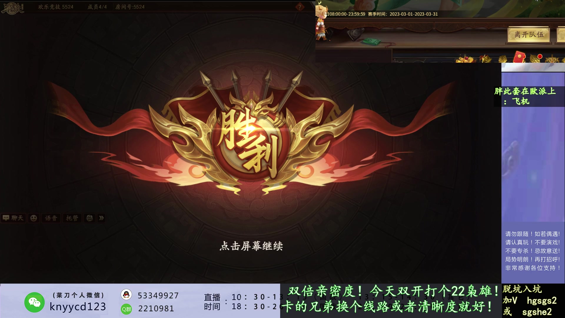 【2023-03-02 09点场】丶砍你焉用菜刀:周三无敌!周四新赛季!