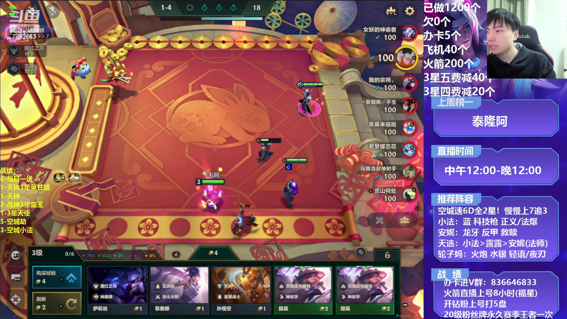【2026-01-16 07点场】南波儿大魔王丶:云顶2000分冲第一!!