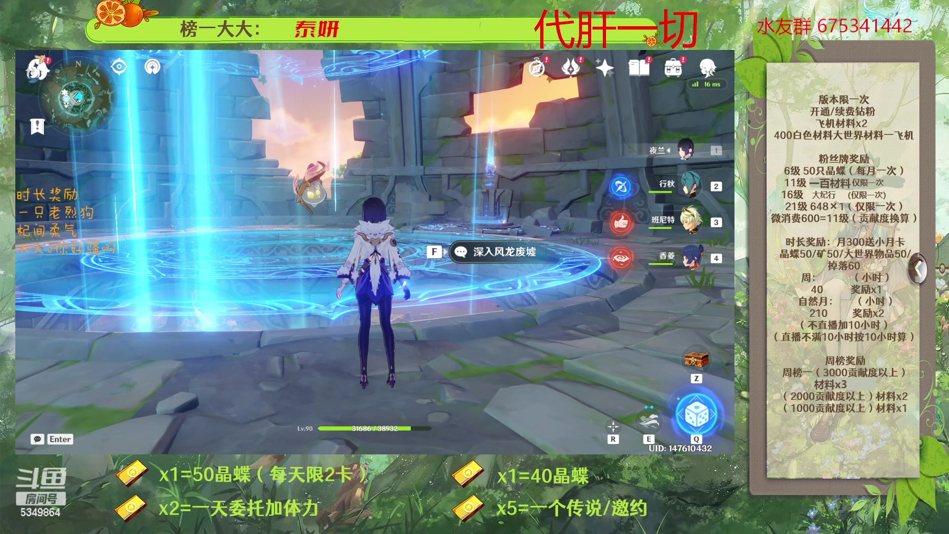 【2023-03-20 11点场】请叫我总攻大人丶:原神深渊/探图/钓鱼/日常/晶蝶/七圣