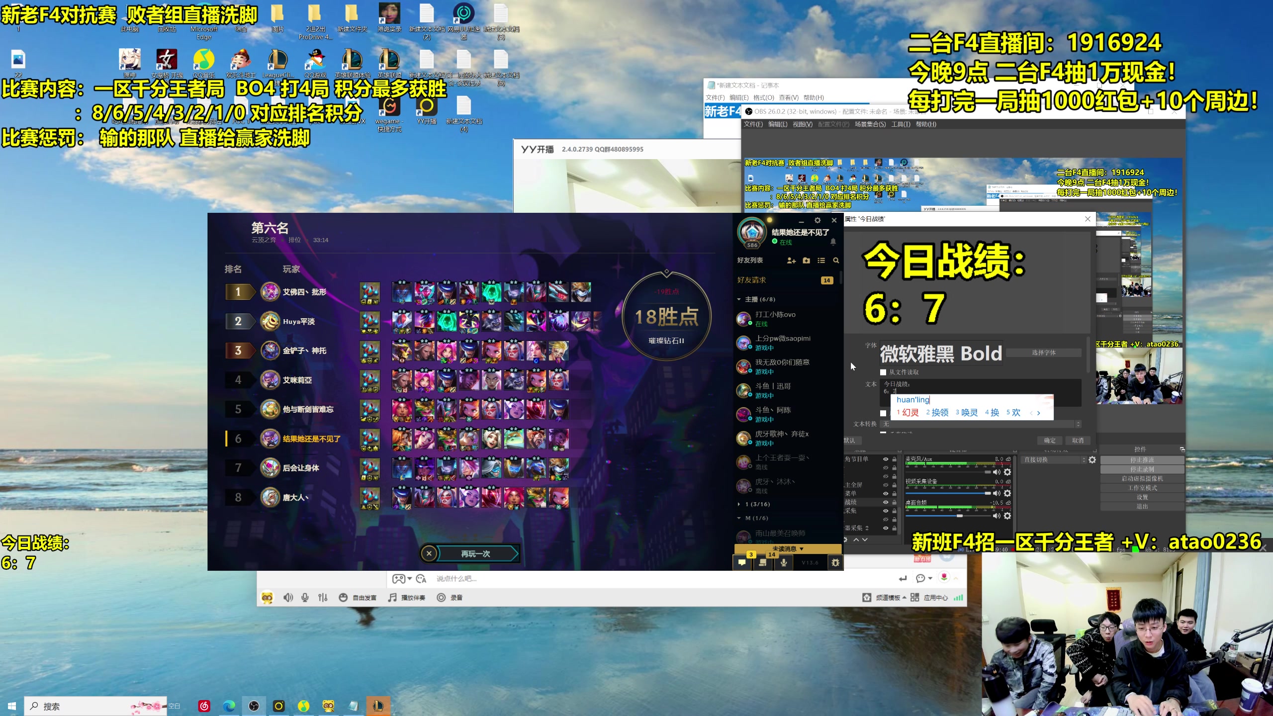 【2026-01-26 23点场】阿涛皎月Carry:F4冲分大赛 4W现金激励冲国服第一!