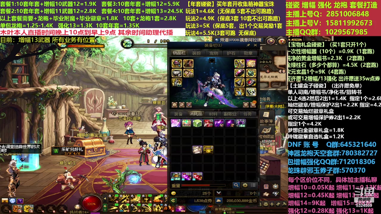 【2026-01-23 12点场】DNF木叶剑心:助理:2026年年套增幅强化木叶晚上播
