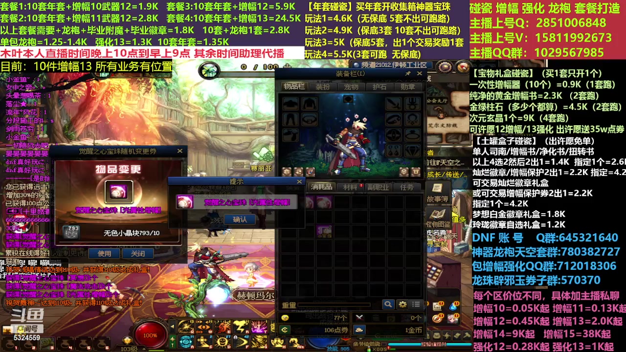 【2026-01-23 12点场】DNF木叶剑心:助理:2026年年套增幅强化木叶晚上播