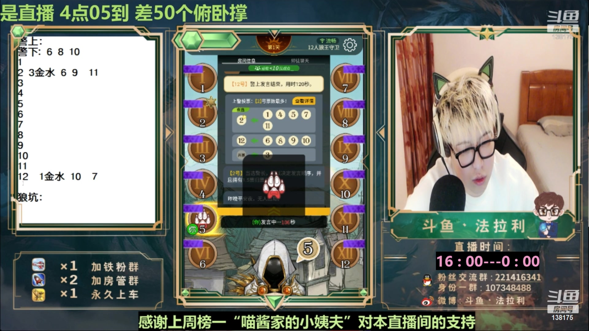 【2023-04-20 00点场】法拉利的直播间:斗鱼第一狼人杀技术主播