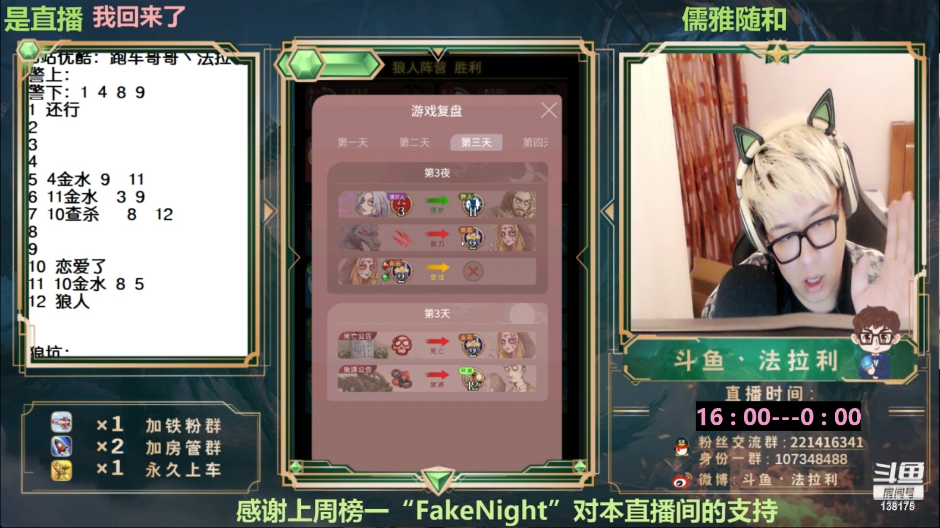 【2023-04-17 16点场】法拉利的直播间:斗鱼第一狼人杀技术主播
