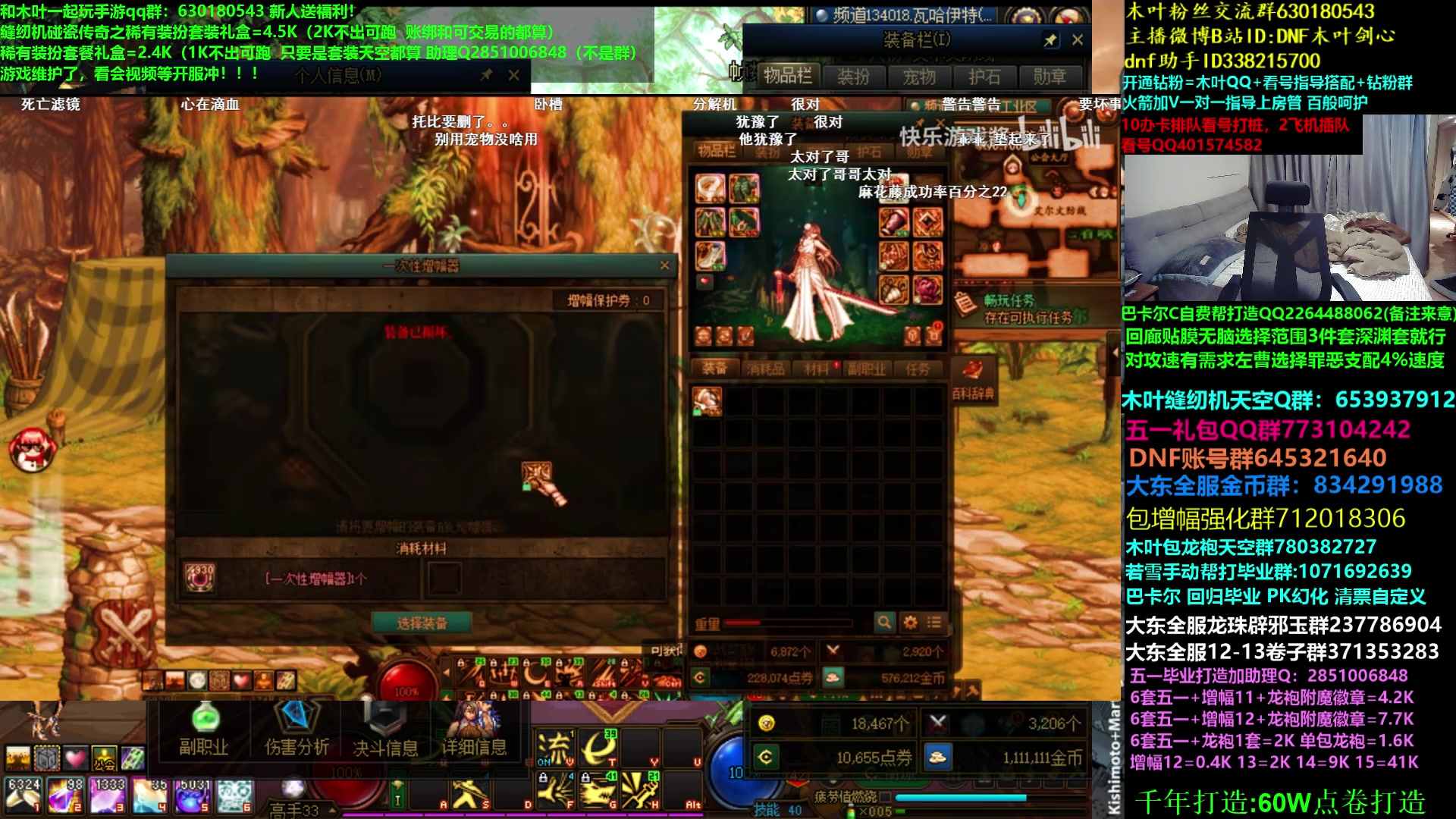 【2026-03-07 10点场】DNF木叶剑心:助理:2026年年套增幅强化木叶晚上播