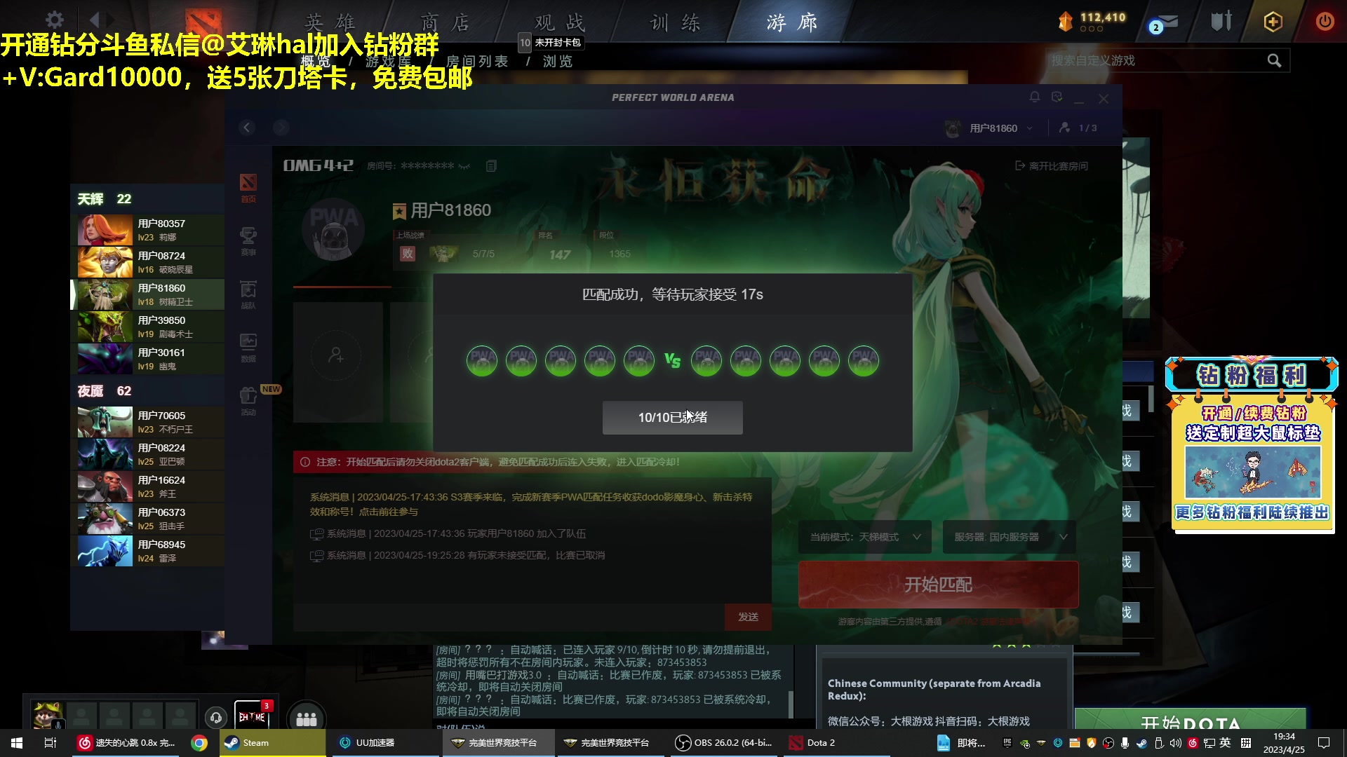 【2023-04-25 19点场】单车老师不迟到:单车】全新版本dota OMG4+2