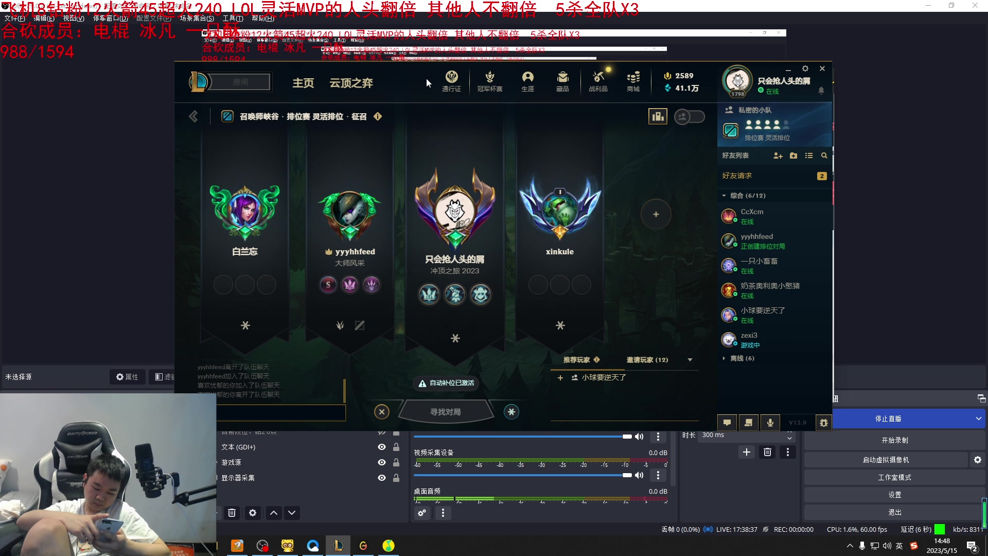 【2023-05-15 12点场】网友张顺飞:合砍:电棍 冰凡 一只酥 来强度。