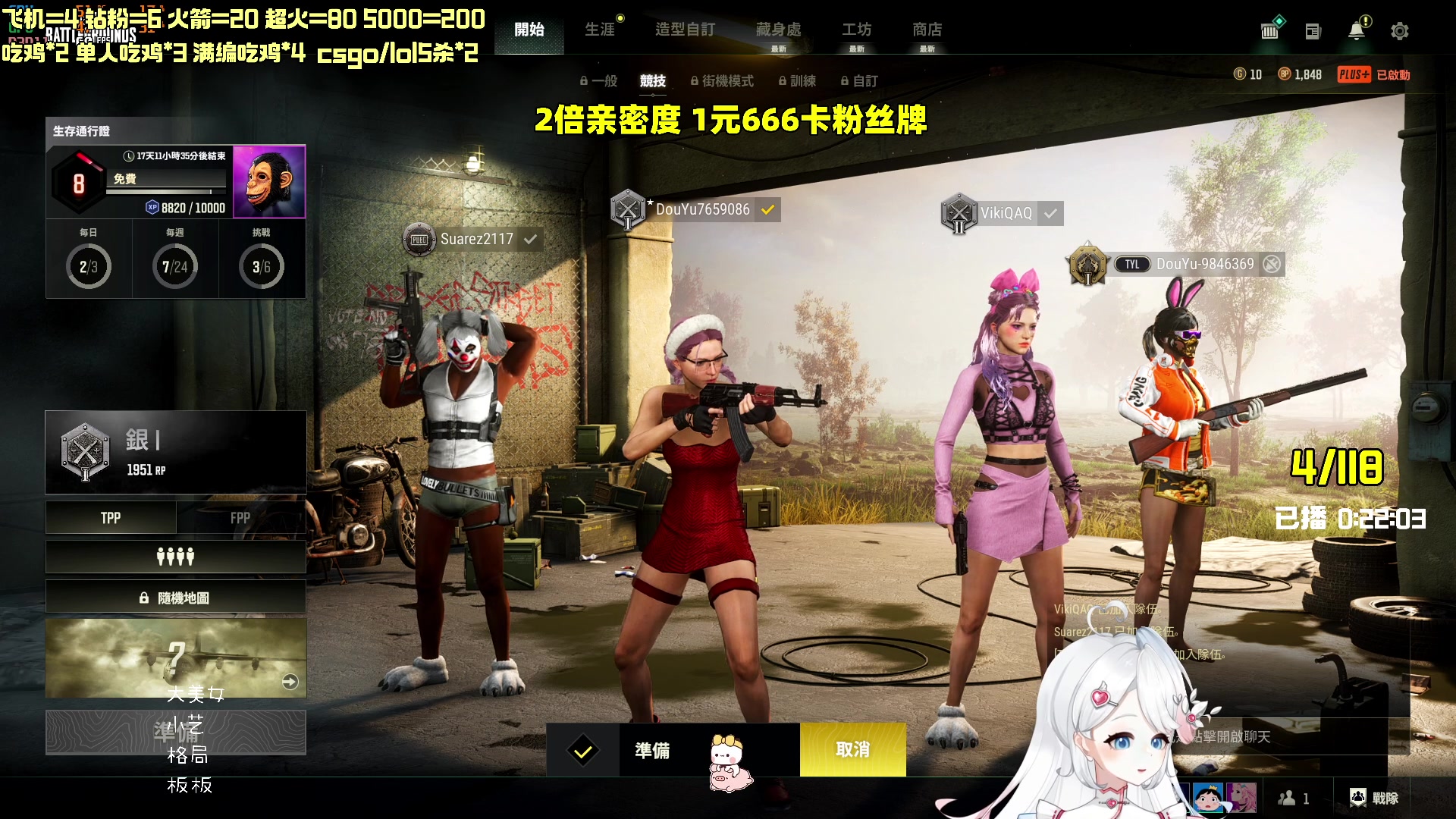 逃跑吧少年:青铜和王者段位一起玩吃鸡,成功吃鸡主播送礼物给他
