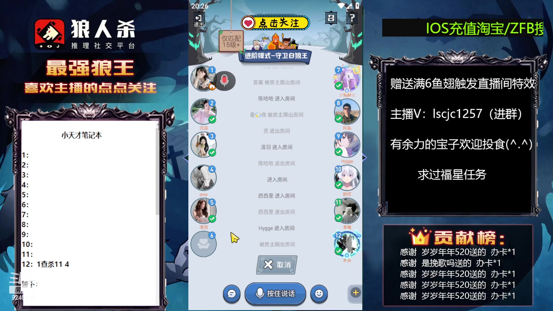 【2026-01-20 19点场】Zhou陈尧:今天5黑抓c~