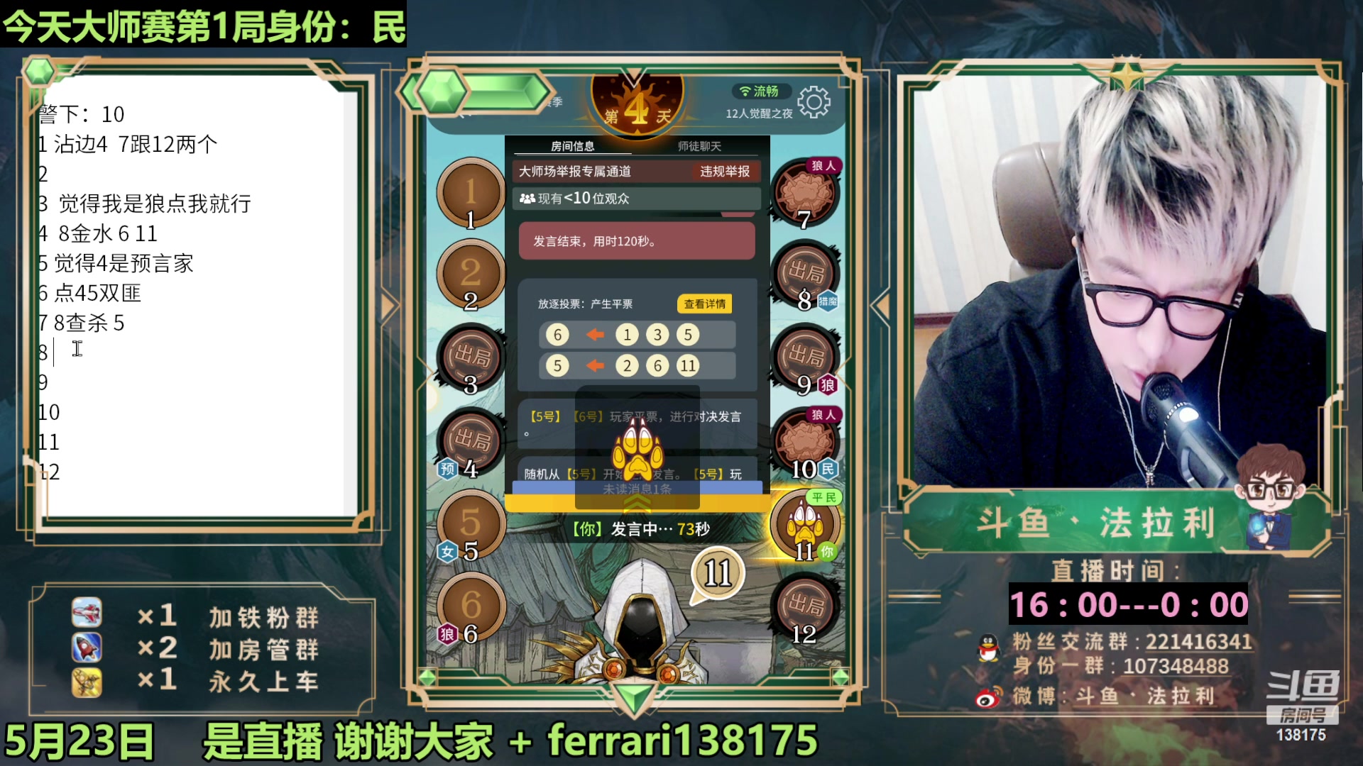 【2023-05-23 22点场】法拉利的直播间:最强狼人杀心理学技术主播来了