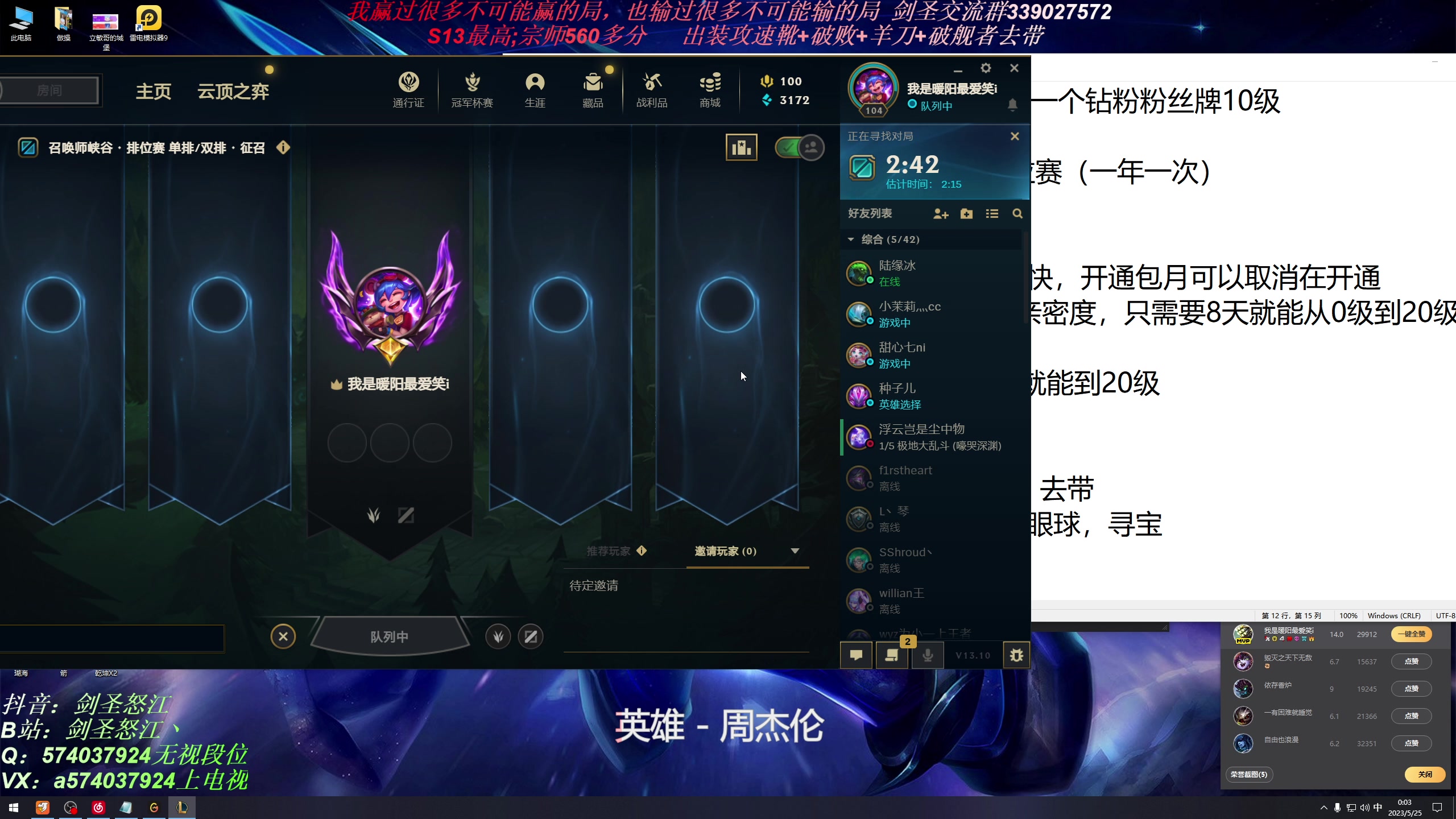 【2023-05-24 21点场】虚弱剑圣怒江:第一剑圣:六万多把的峡谷王者剑圣教学专场