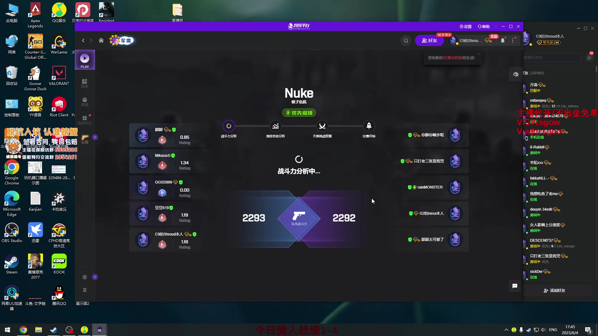 【2023-06-04 17点场】玩机器丶Machine:天梯单排复健第四天