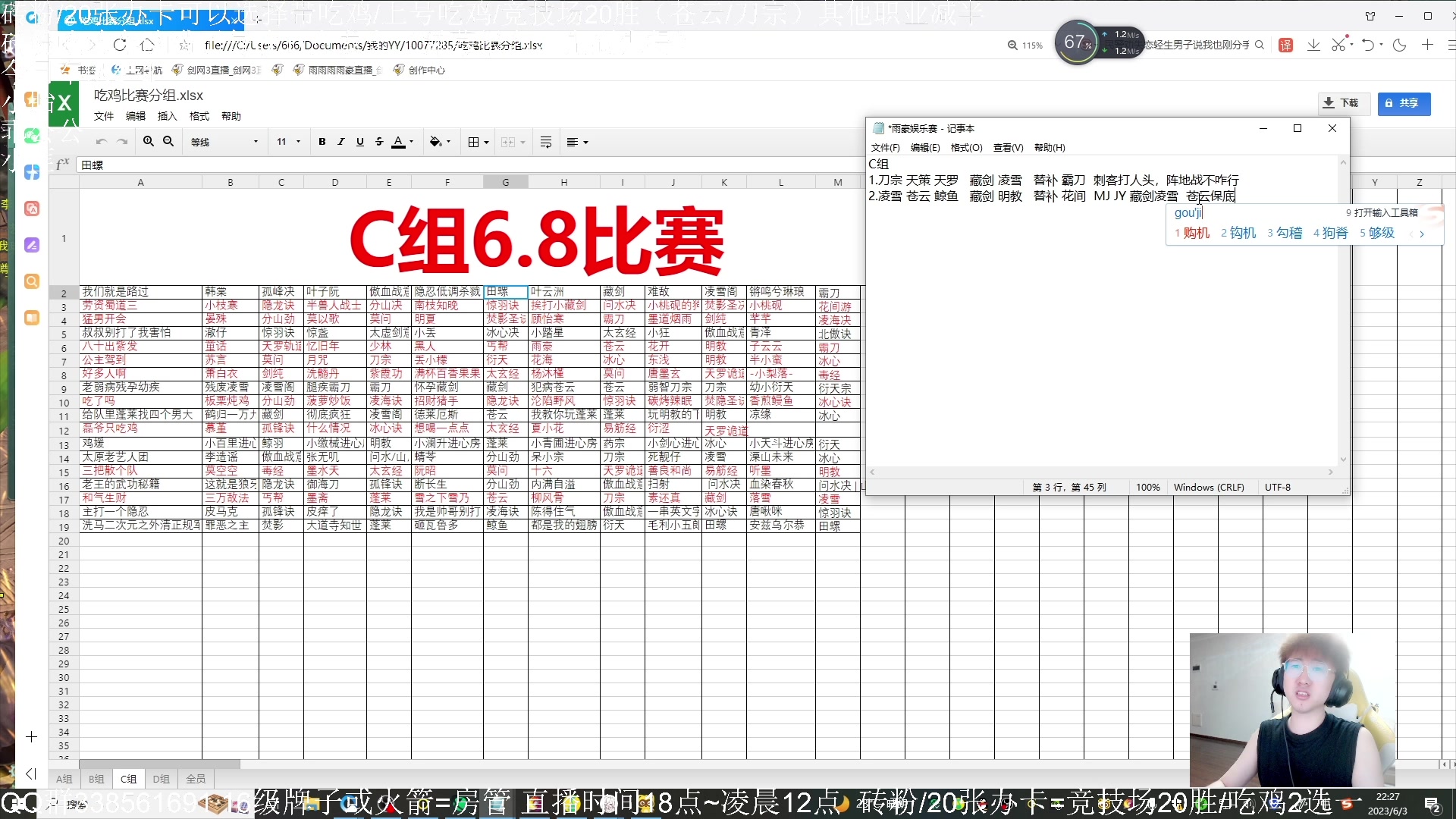 【2023-06-05 00点场】雨雨雨雨豪:足智多谋的小刚吃鸡~18:00准时来