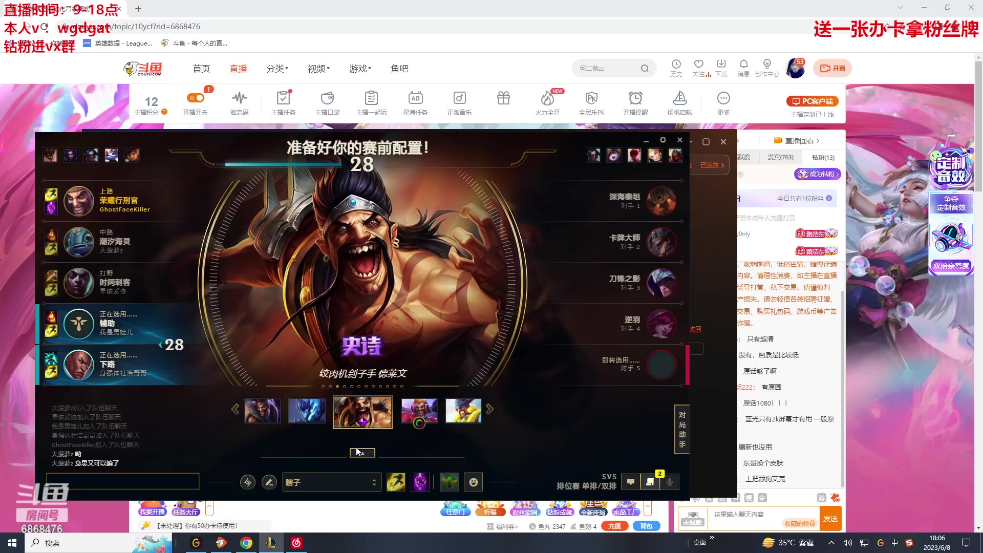 【2023-06-08 09点场】路浩东ouo:新主播 你们不配拥有治疗德莱文