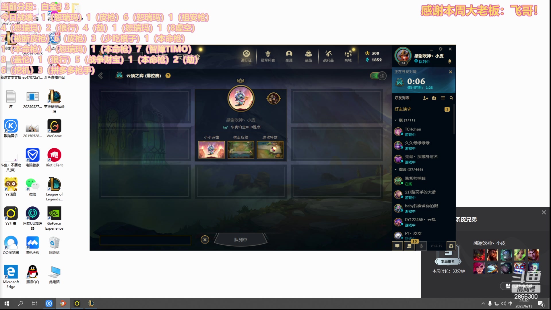 【2023-06-13 09点场】NB丶条皮兄弟:开心上分!拒绝破防!