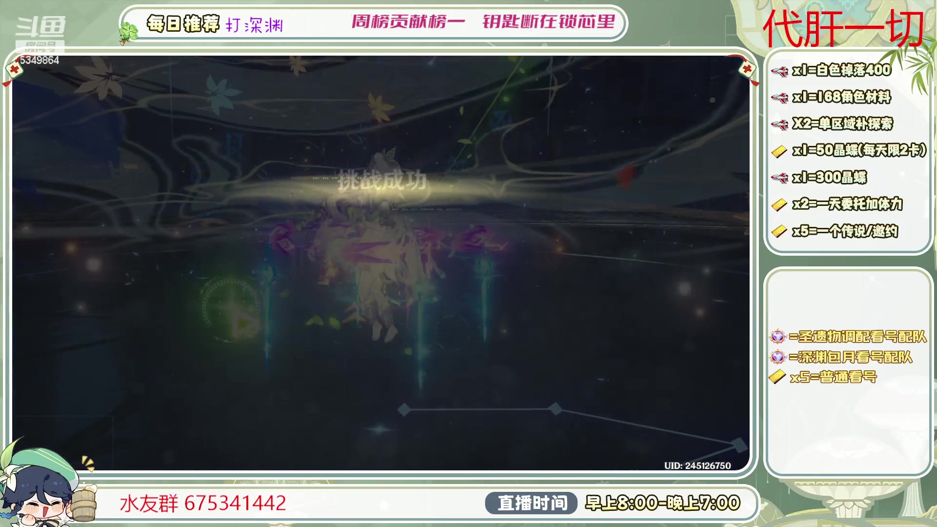 【2023-06-16 18点场】请叫我总攻大人丶:看号/深渊/探图/钓鱼/日常/晶蝶/打牌