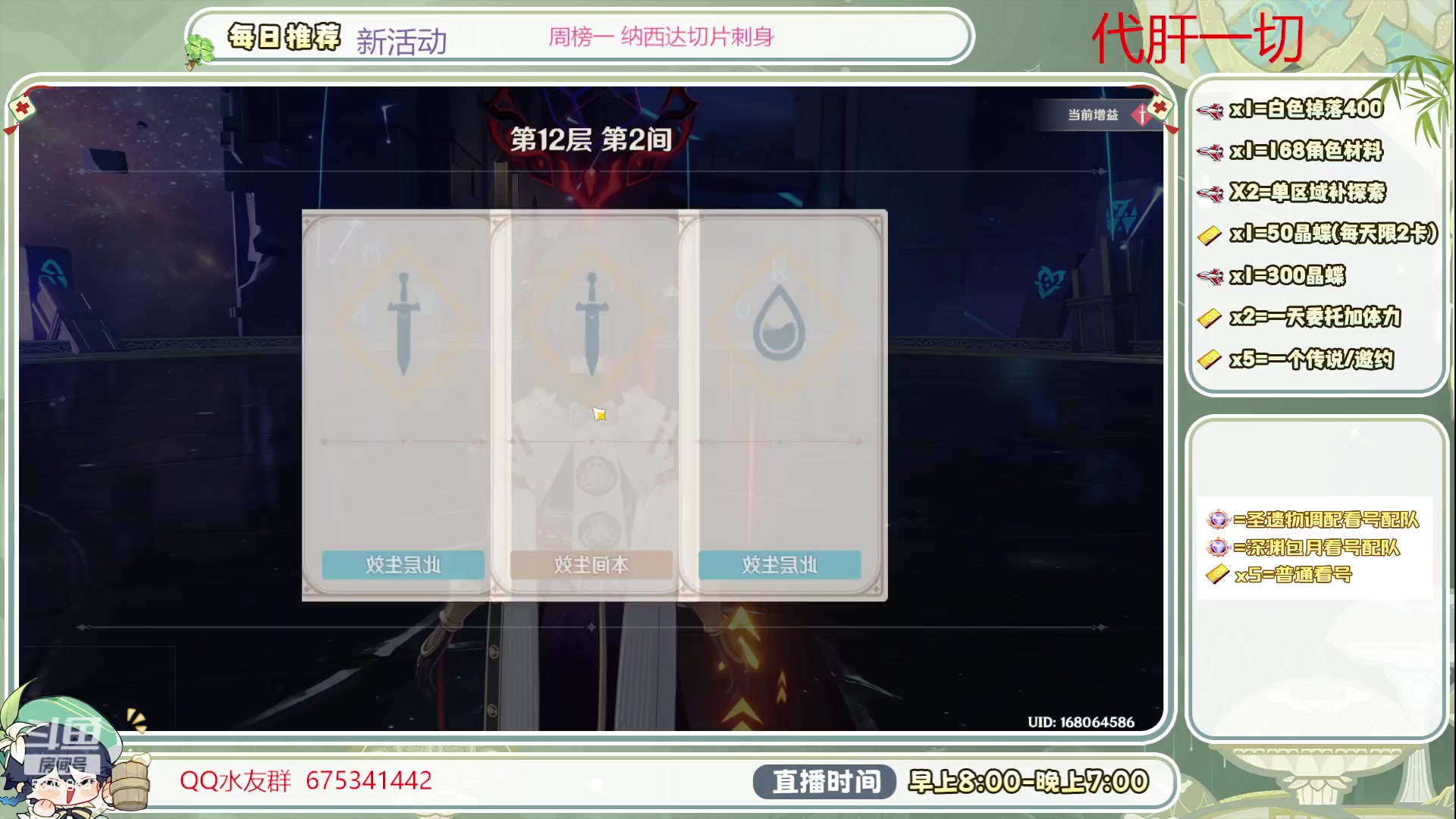 【2023-07-06 12点场】请叫我总攻大人丶:看号/深渊/探图/钓鱼/日常/晶蝶/打牌