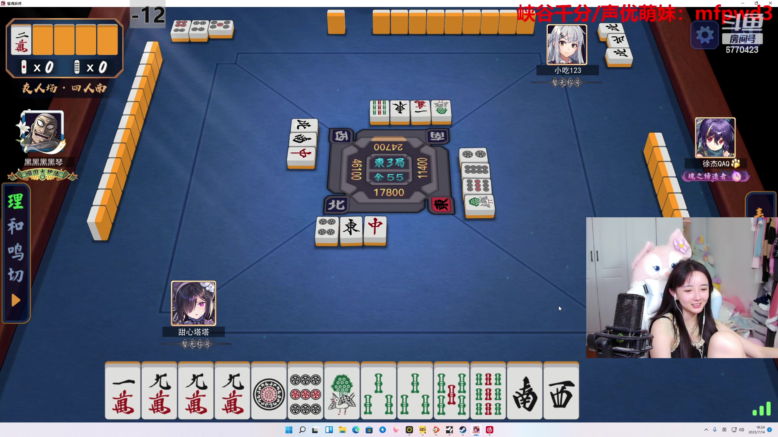 【2023-07-14 15点场】塔莉娅QAQ:甜心小塔:和枫哥南风右手麻将
