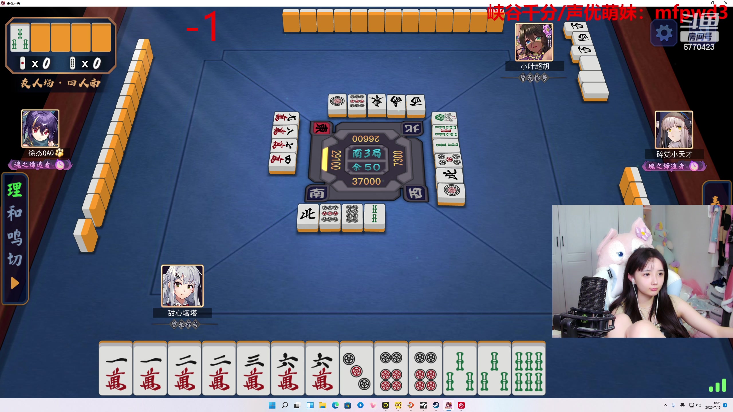 【2023-07-15 05点场】塔莉娅QAQ:甜心小塔:和枫哥南风右手麻将