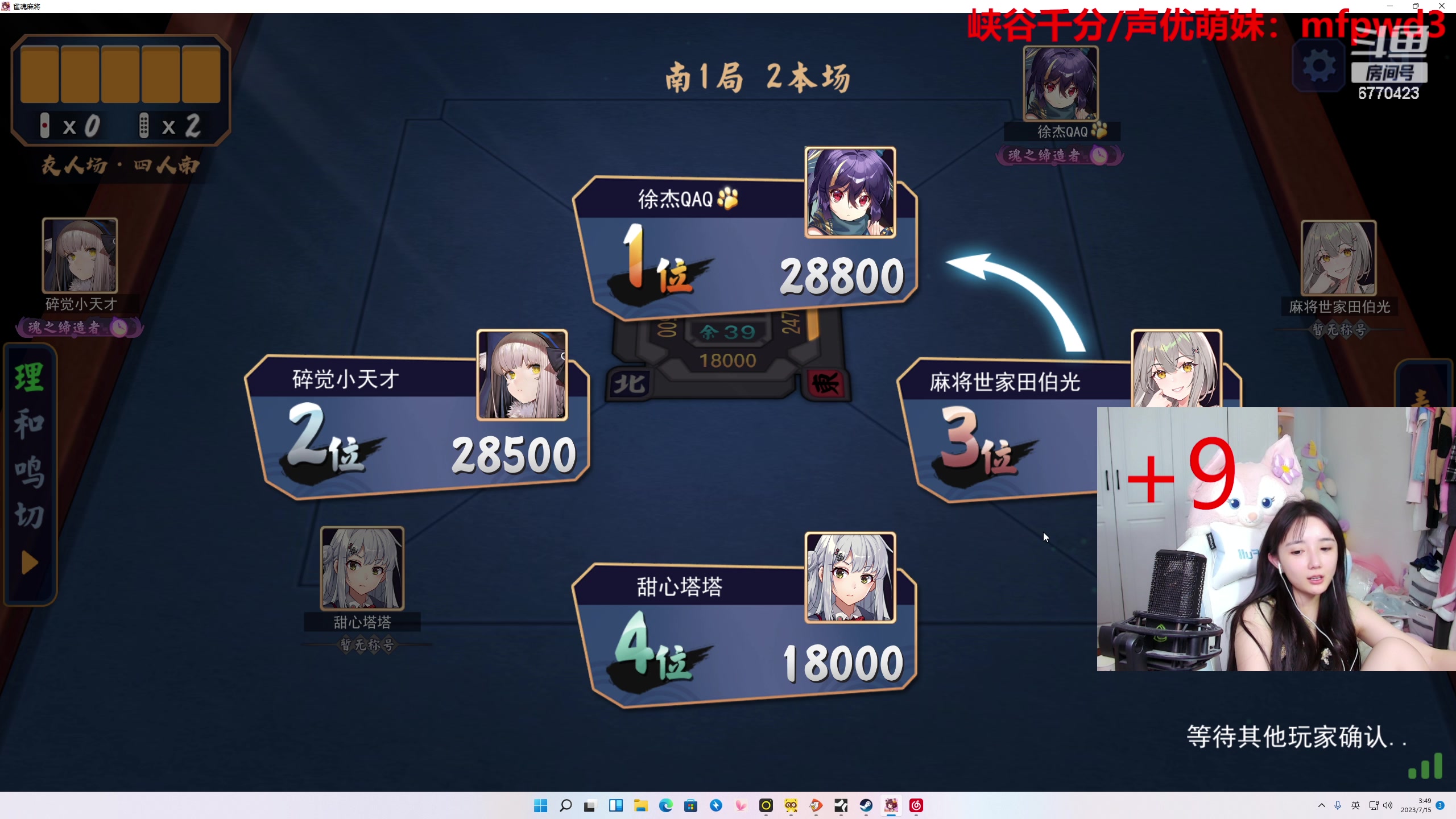 【2023-07-15 05点场】塔莉娅QAQ:甜心小塔:和枫哥南风右手麻将
