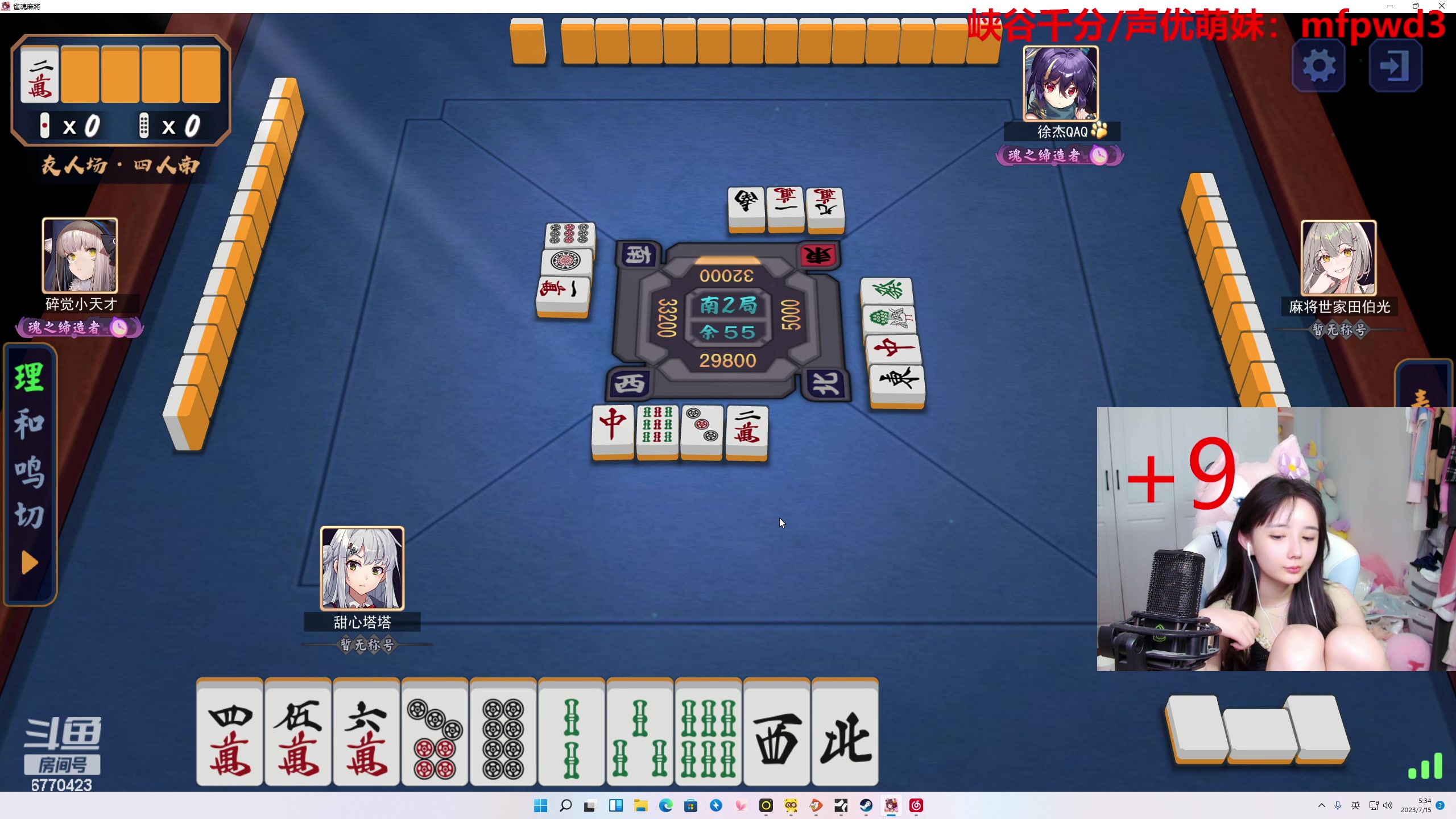 【2023-07-15 05点场】塔莉娅QAQ:甜心小塔:和枫哥南风右手麻将