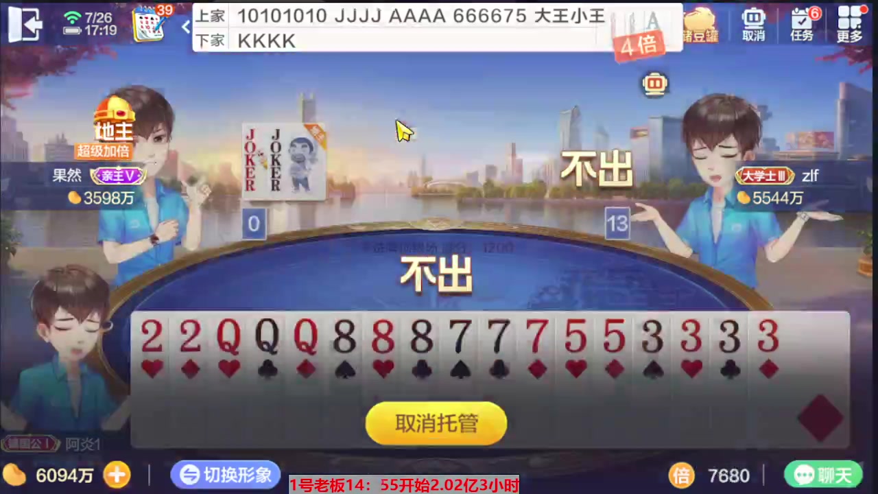 【2023-07-26 14点场】灬幸之斗地主灬:三个小时赢了六个亿?你敢信?