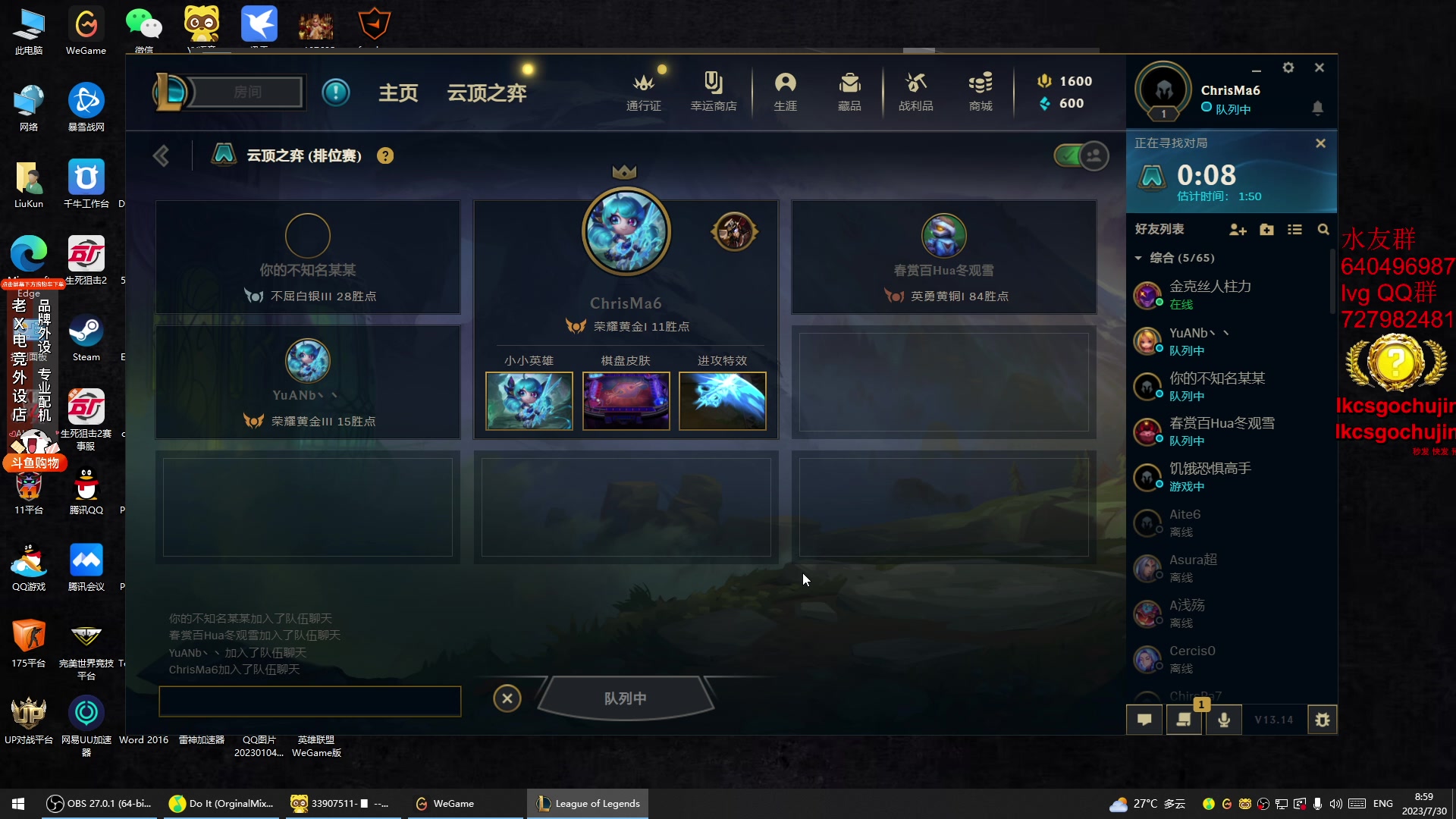 【2023-07-29 21点场】loveyou_qq:今天双倍 打打CSGO 开开船下下云顶