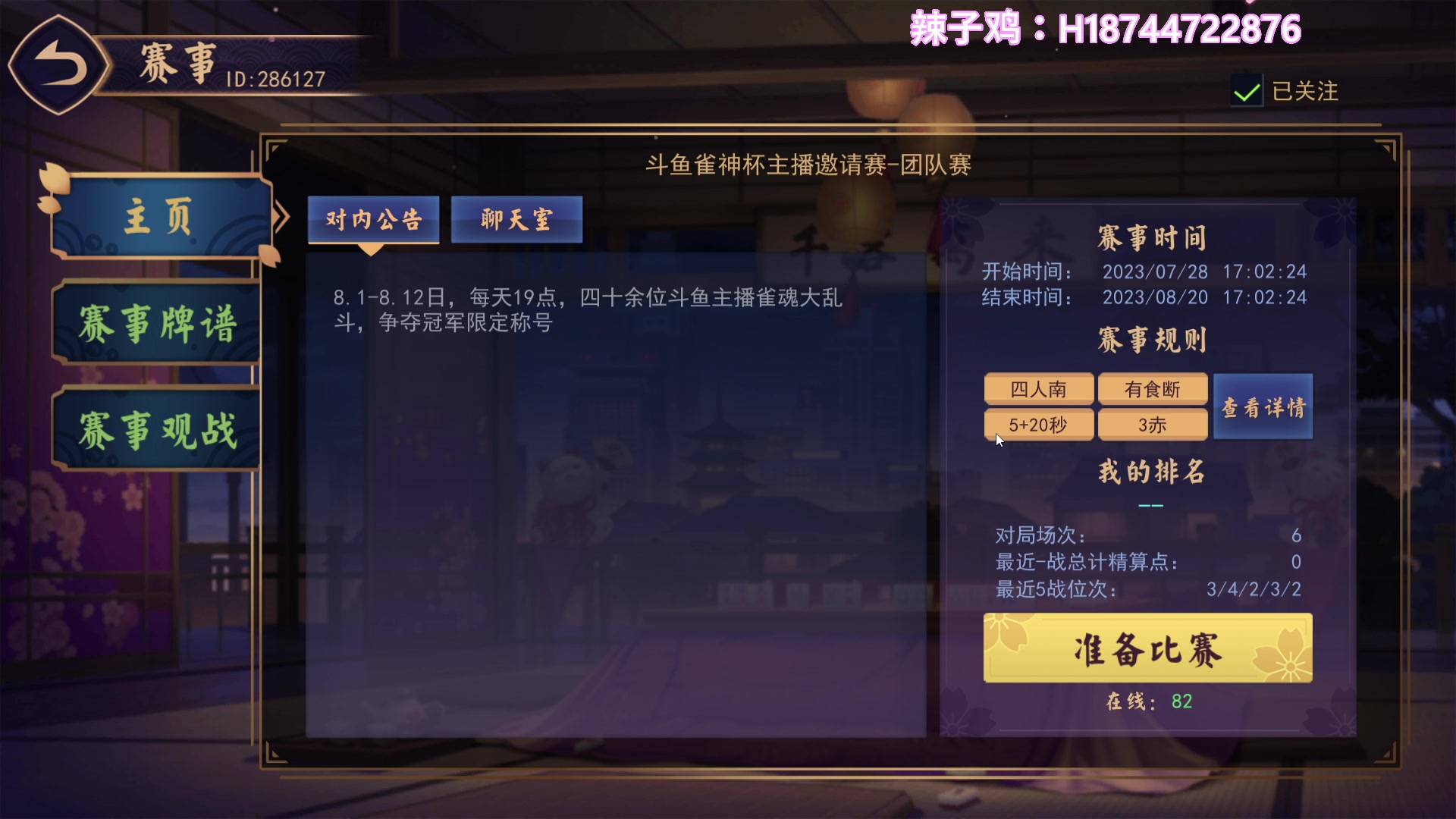 【2023-08-07 19点场】阿聪丷:【阿聪】难他天?晚上8点雀魂比赛