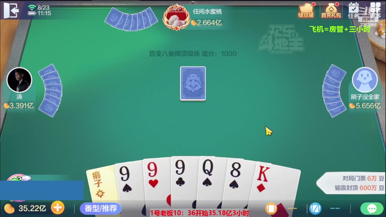 【2023-08-23 10点场】灬幸之斗地主灬:三个小时赢了六个亿?你敢信?