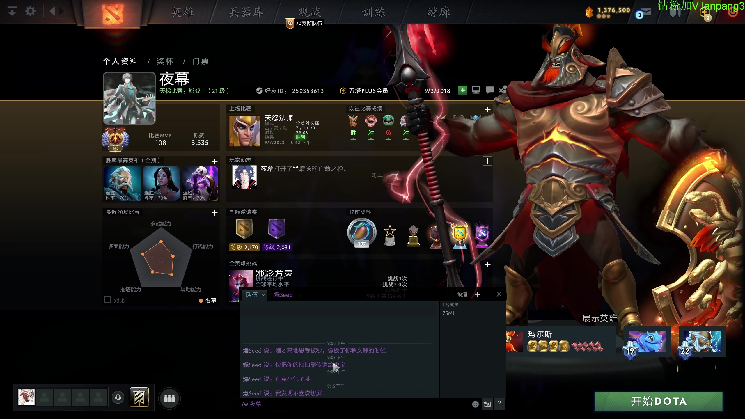 【2023-09-09 21点场】龚建ZSMJ:8点左右请了个JG私教DOTA!