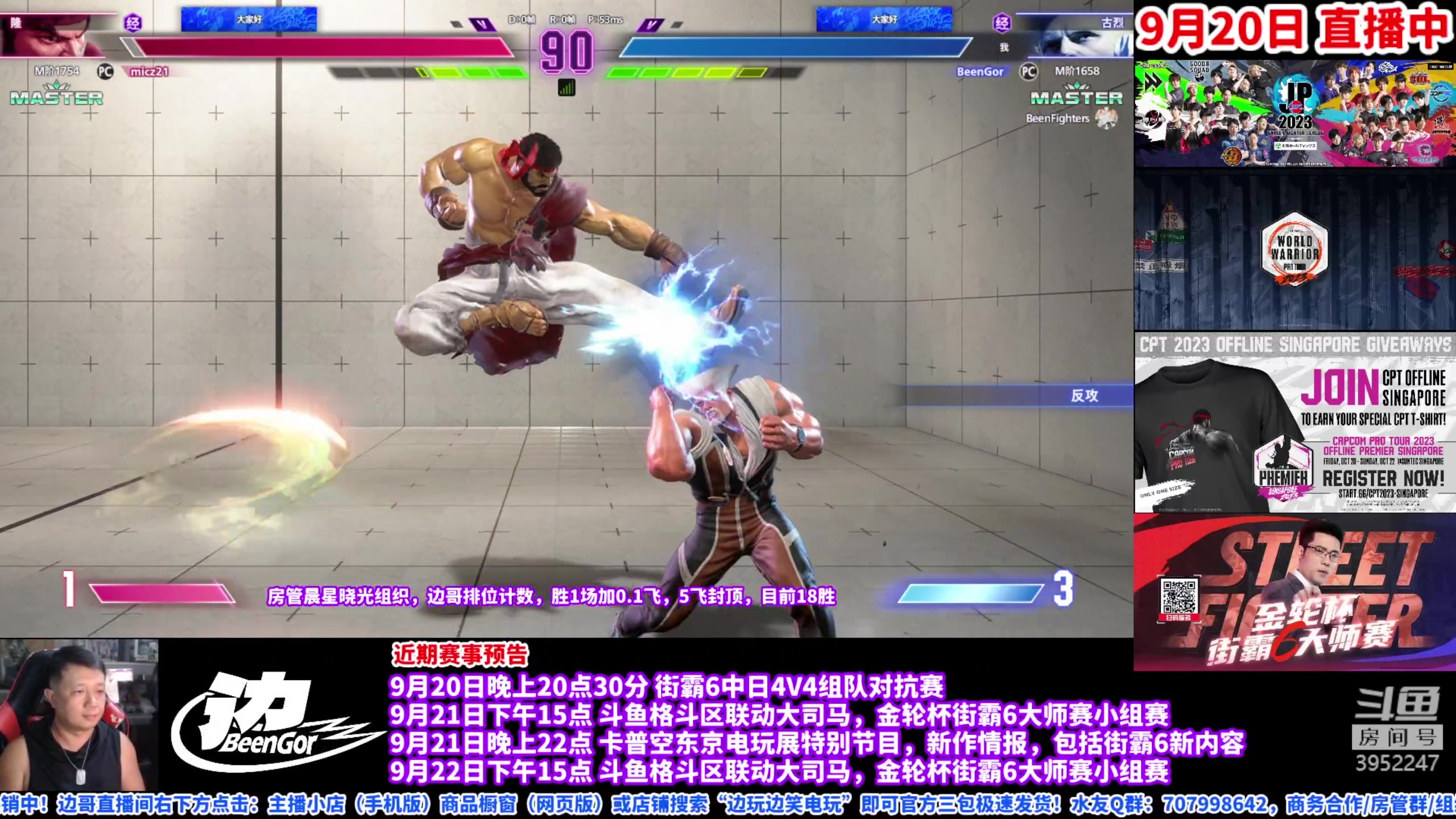 【2023-09-20 19点场】边哥BeenGor:直播:小孩小宝领衔!街霸6中日组队对抗赛