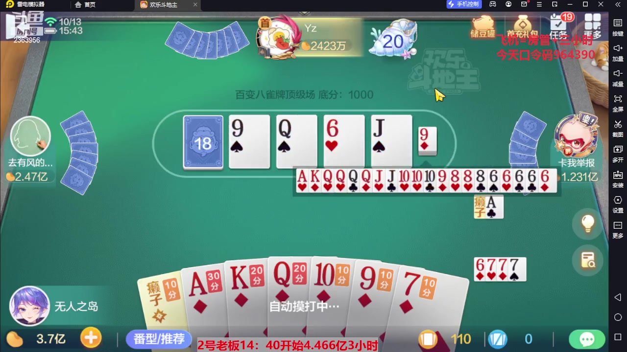【2023-10-13 09点场】灬幸之斗地主灬:国庆快乐!双龙追梦有位置!