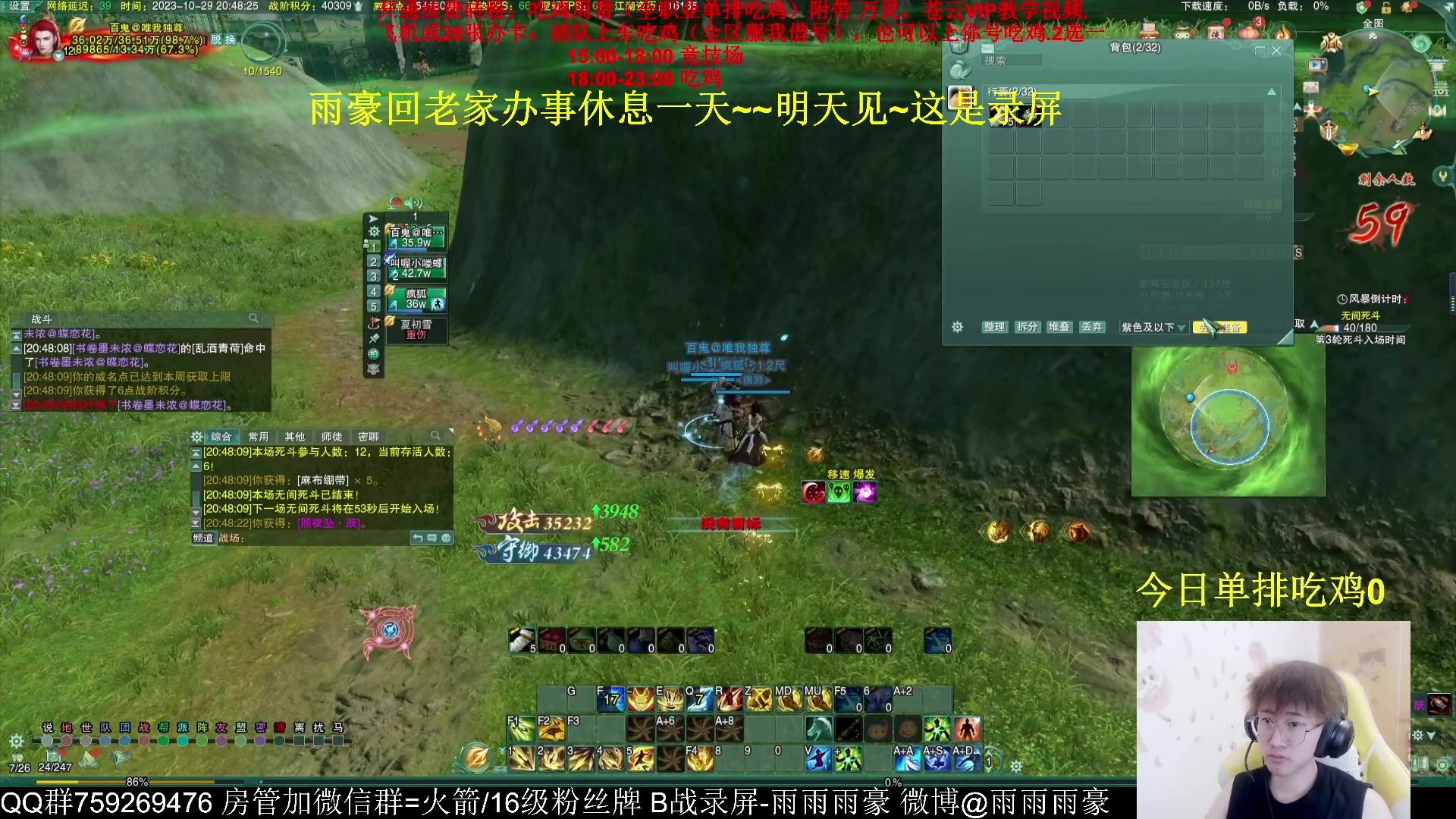 【2023-11-02 11点场】雨雨雨雨豪:雨豪今天休息一天回家办事