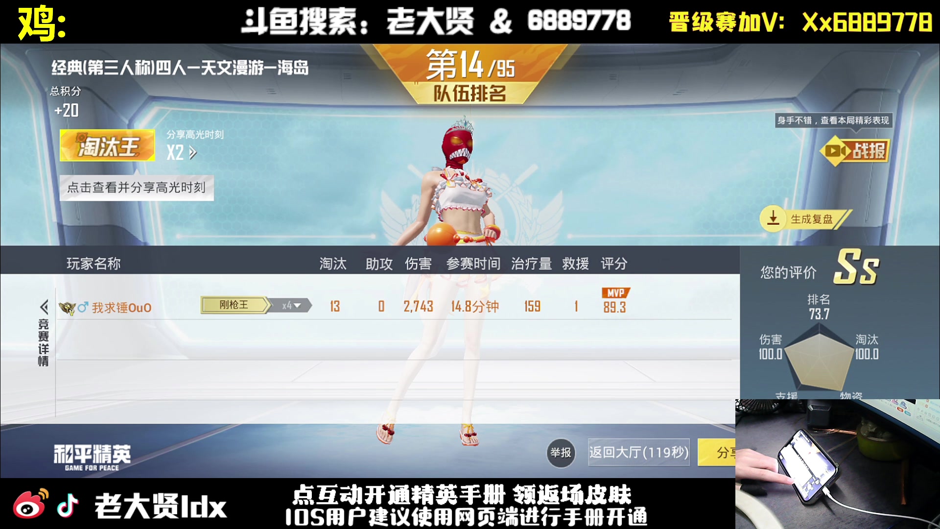 【2024-12-30 20点场】老大贤:王牌1v4:一个人也要像一支军队