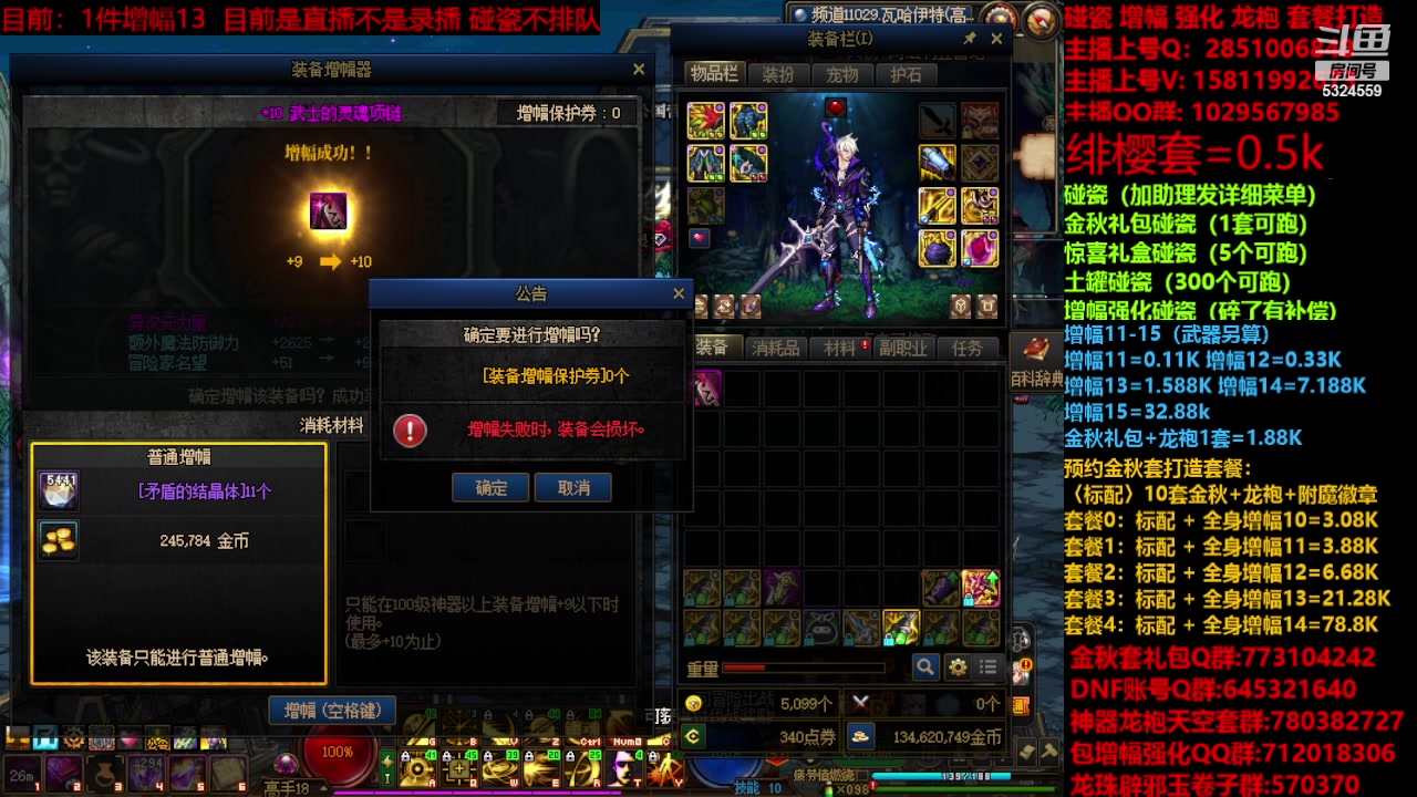 【2023-11-17 12点场】DNF木叶剑心:金秋强化增幅龙袍碰瓷打造