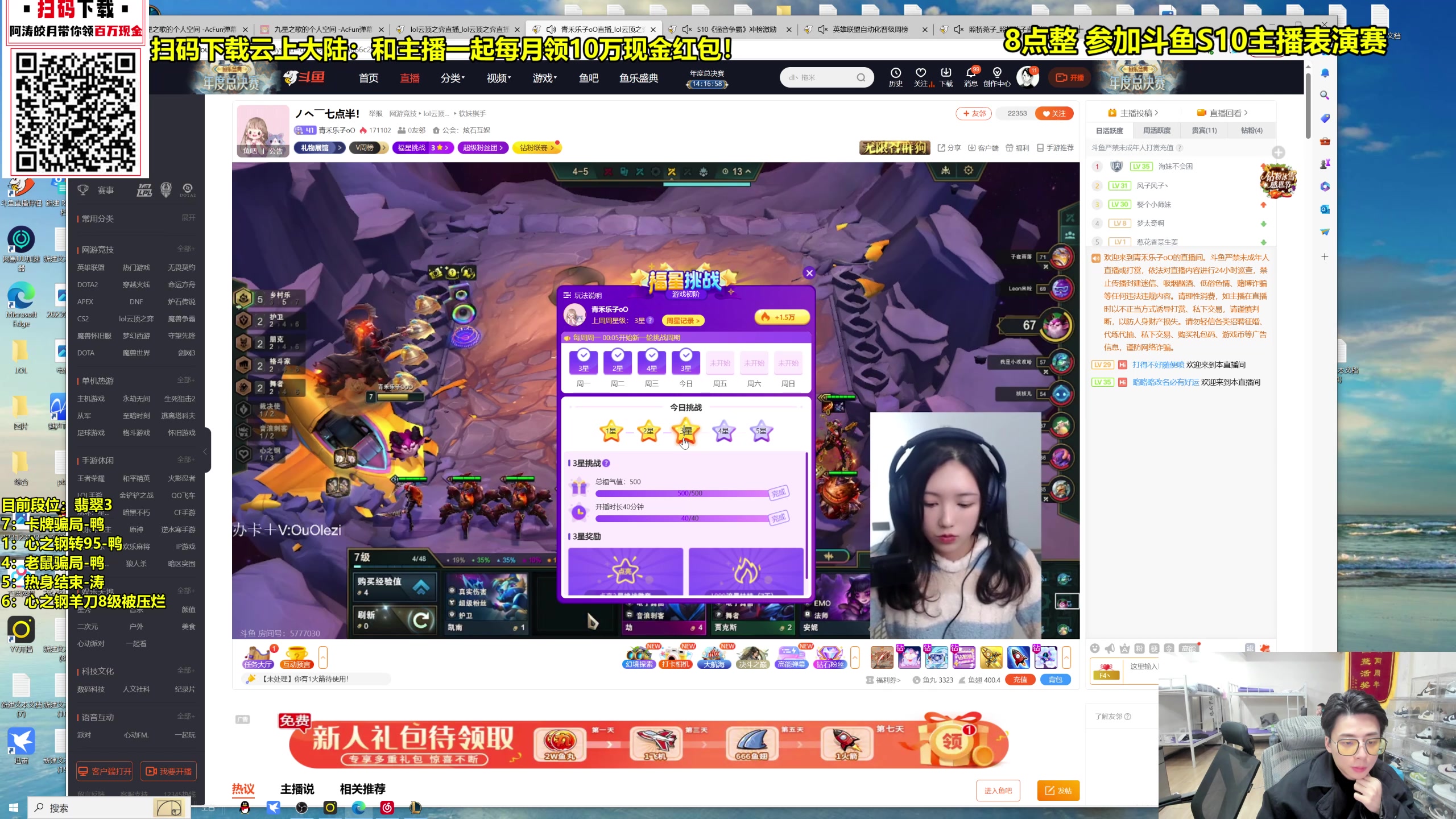 【2026-01-22 23点场】阿涛皎月Carry:F4冲分大赛 4W现金激励冲国服第一!