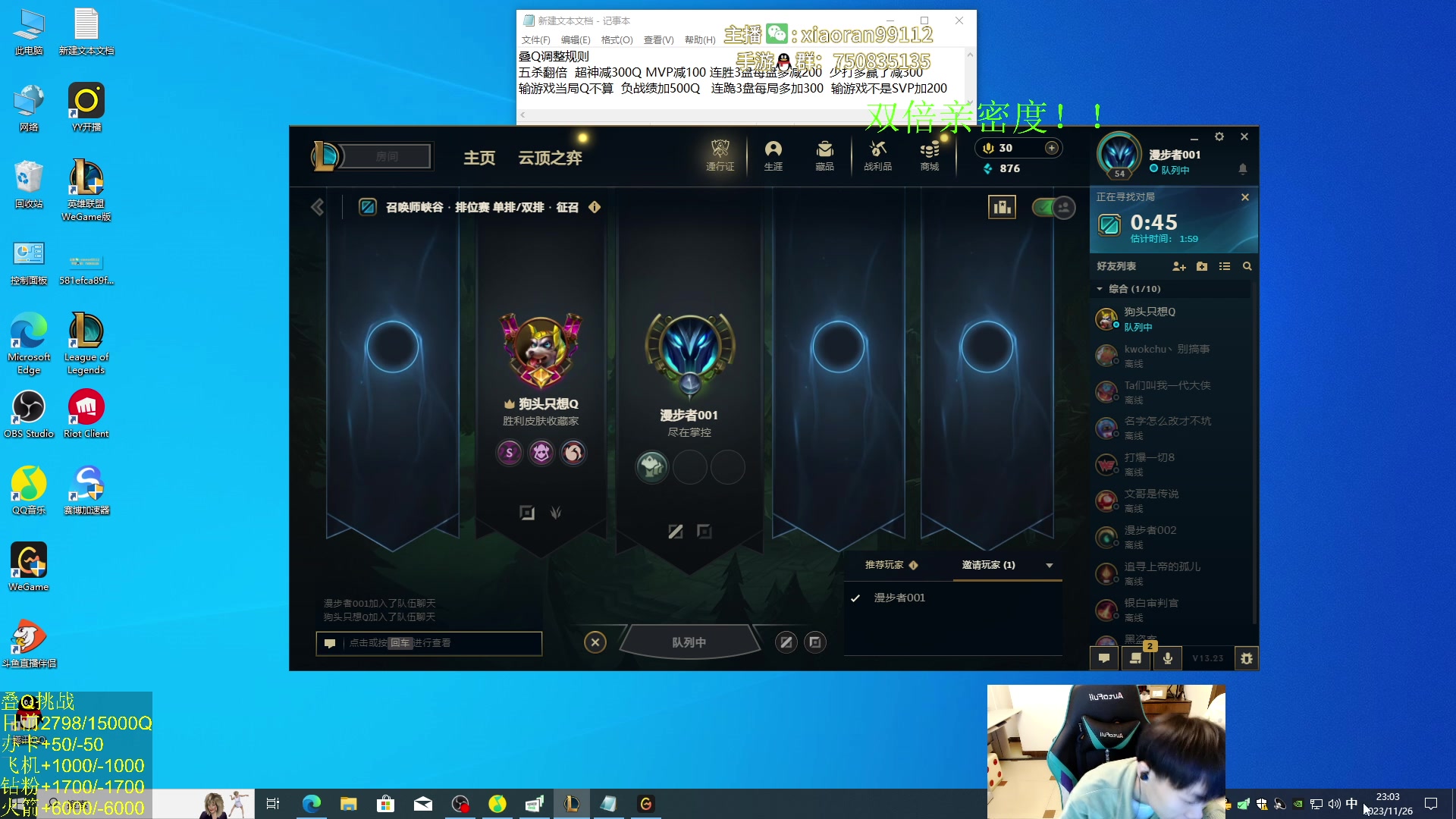 【2023-11-26 22点场】Dy丶小然:刺客流狗头 沉浸式发育!!!