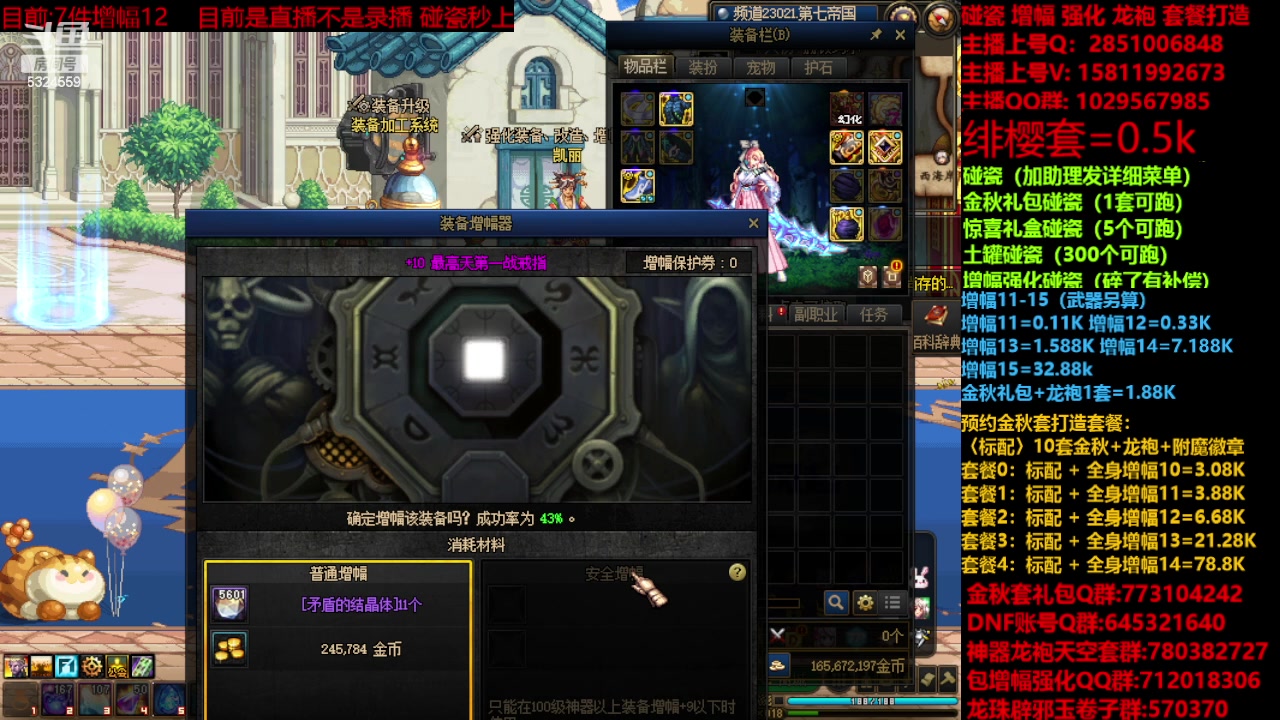 【2023-11-29 12点场】DNF木叶剑心:金秋强化增幅龙袍碰瓷打造