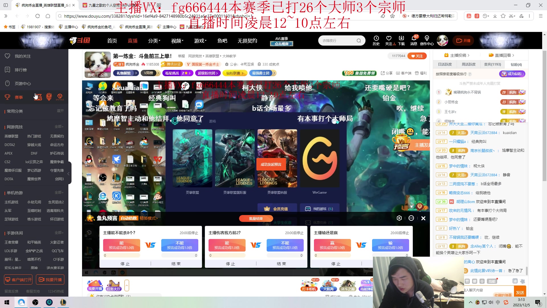 【2023-12-05 00点场】疯狗炼金:第一炼金:斗鱼前三上单!
