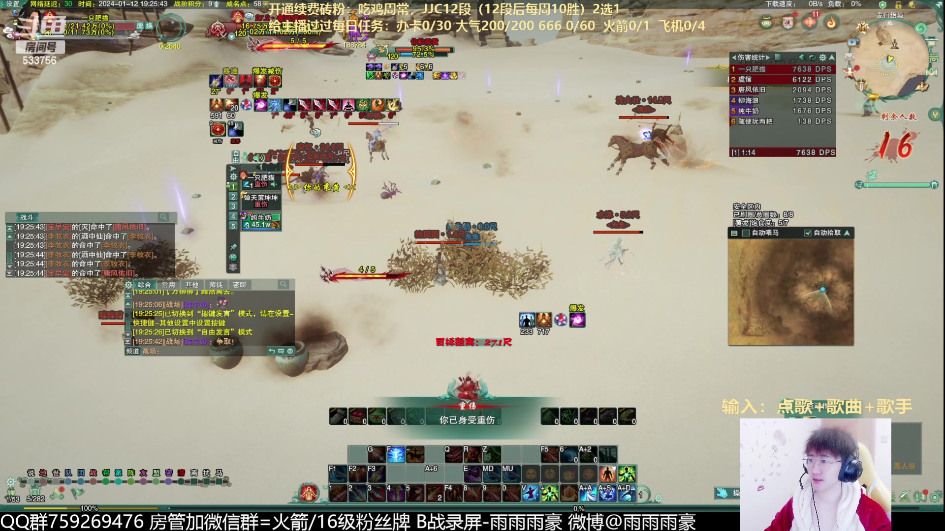 【2024-01-12 18点场】雨雨雨雨豪:【雨豪】小刚吃鸡全是活