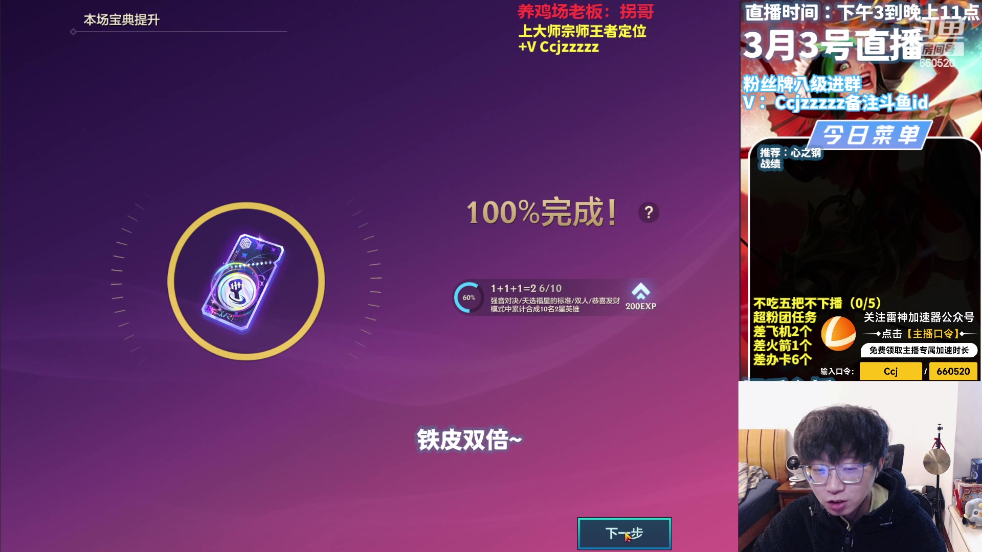【2026-01-19 17点场】不太嘻哈的Ccj:巅峰赛day3 噶油!