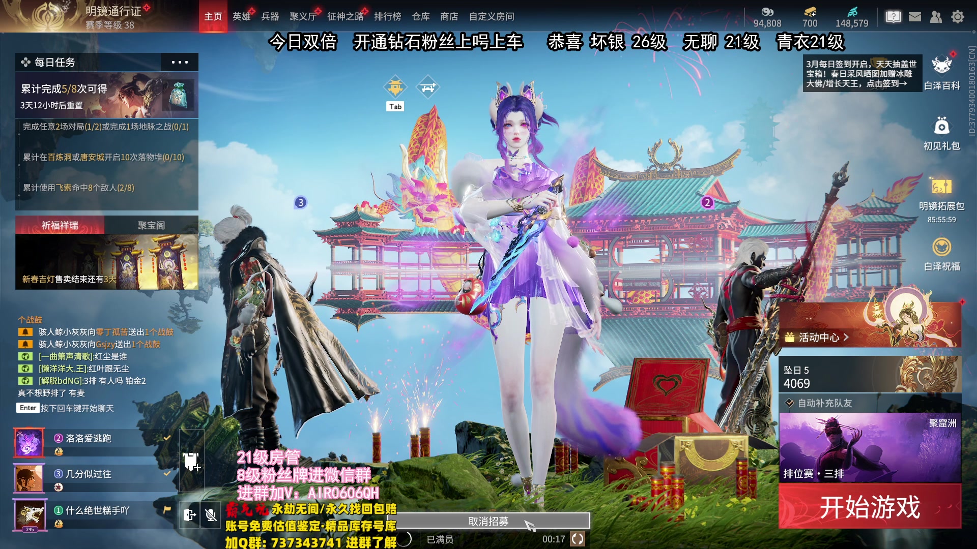 【2024-03-03 15点场】在下黄复来:【黄复来】双倍-钻粉上号上车上大分!