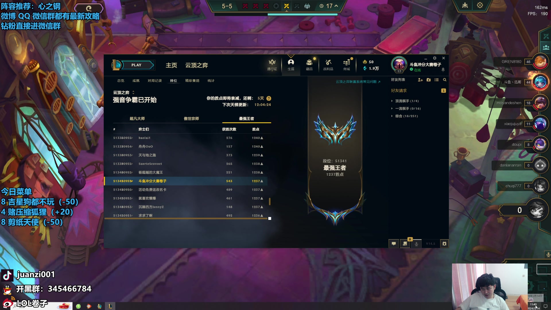 【2026-01-19 09点场】卷子丶:状态神勇,上分上分!!