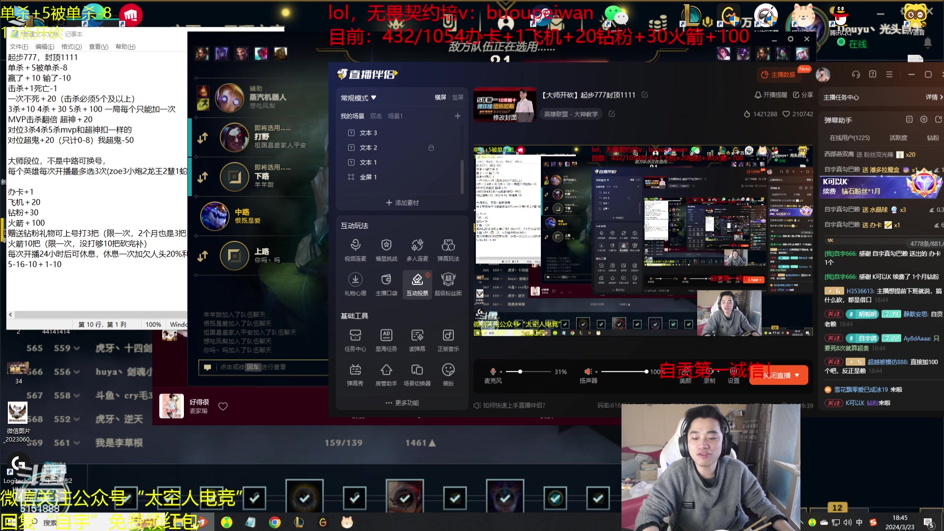 【2024-03-23 18点场】自宇666:【大师开砍】起步777封顶1111