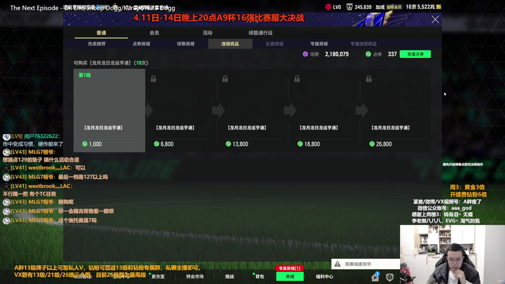 【2024-04-10 14点场】A胖瘦了:[3倍]A胖~开卡/看号/踢球