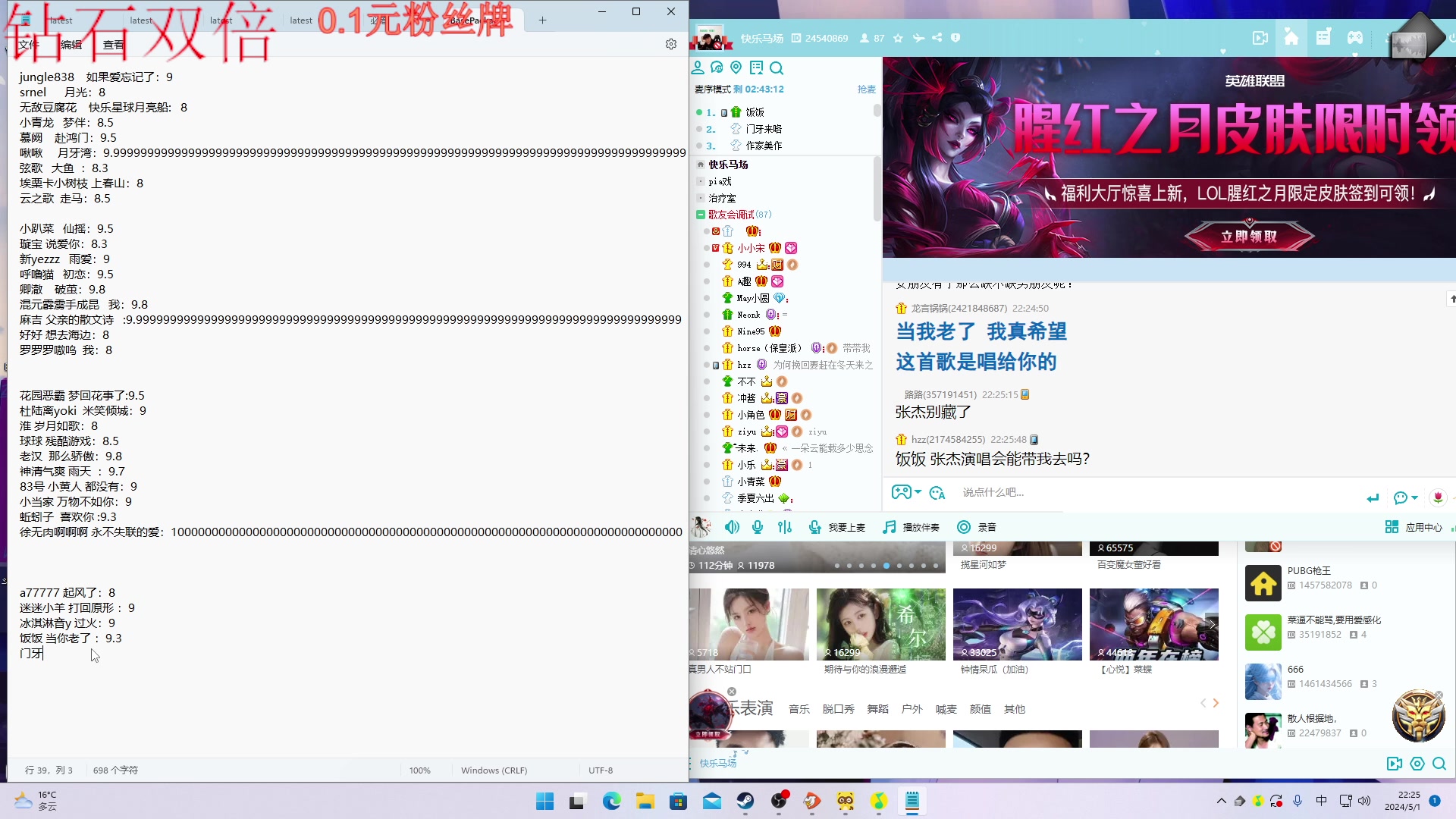 【2024-05-01 23点场】Ziyuii:钻石双倍5.1马场歌友会