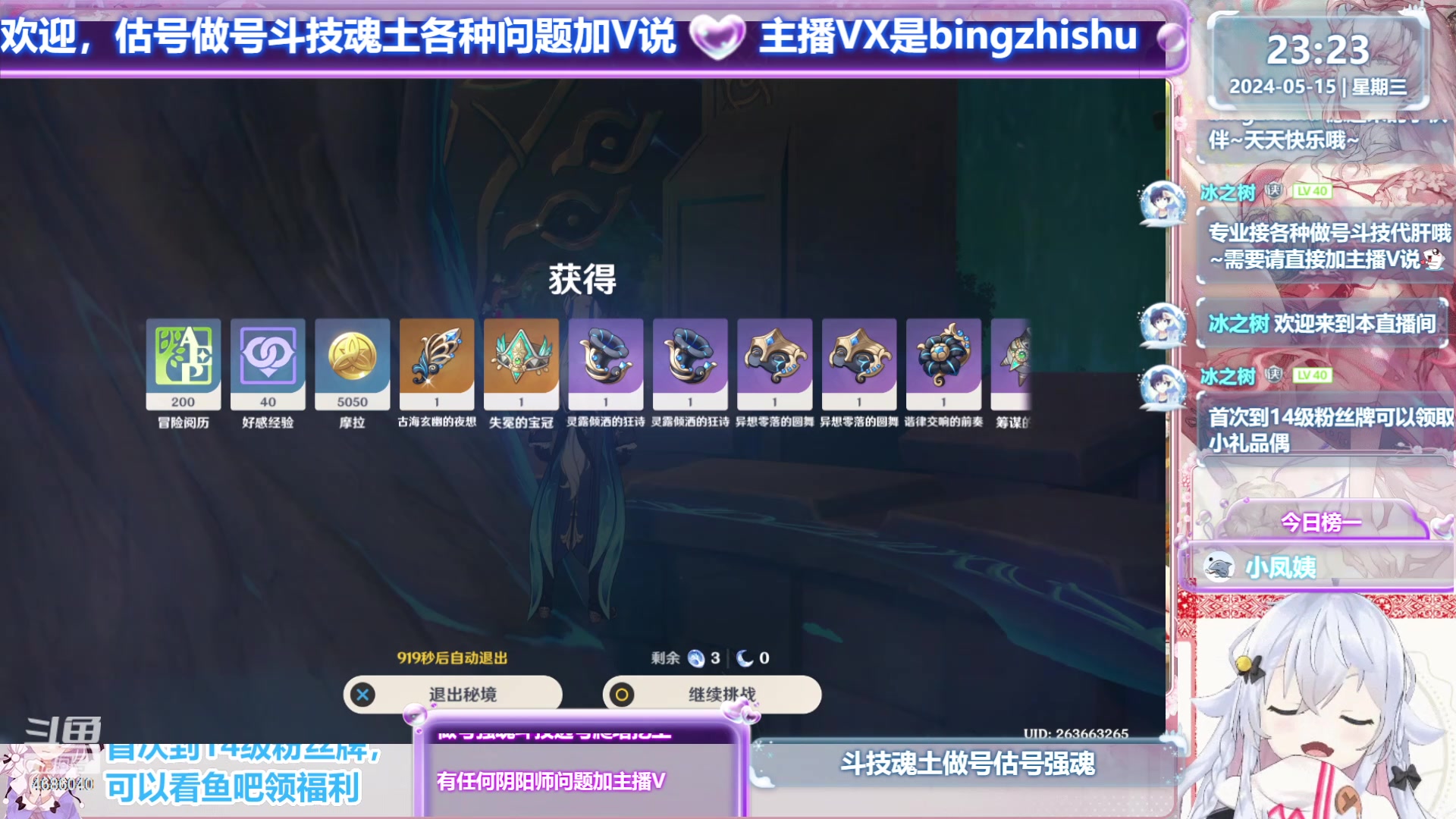 【2024-05-15 20点场】冰之树:估号做号斗技、藏宝阁选号♥