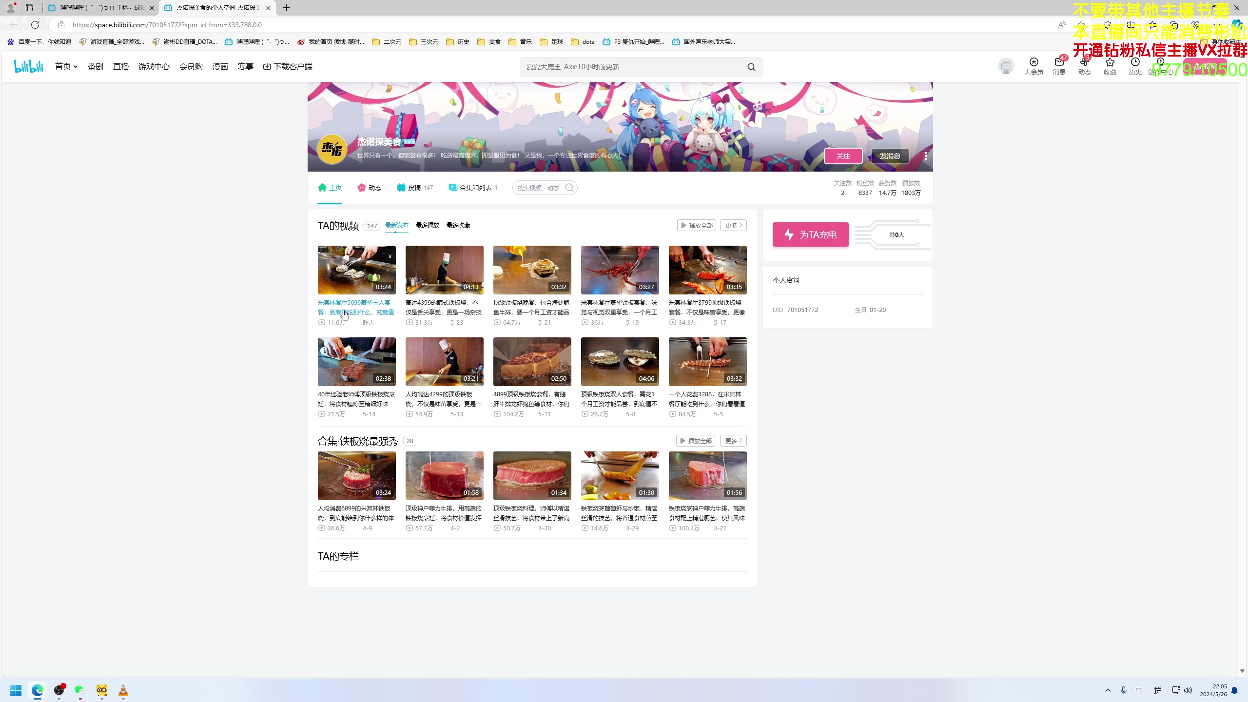 【2024-05-26 20点场】谢彬DD:【黄金双倍】喂,在吗?进来看Show了.