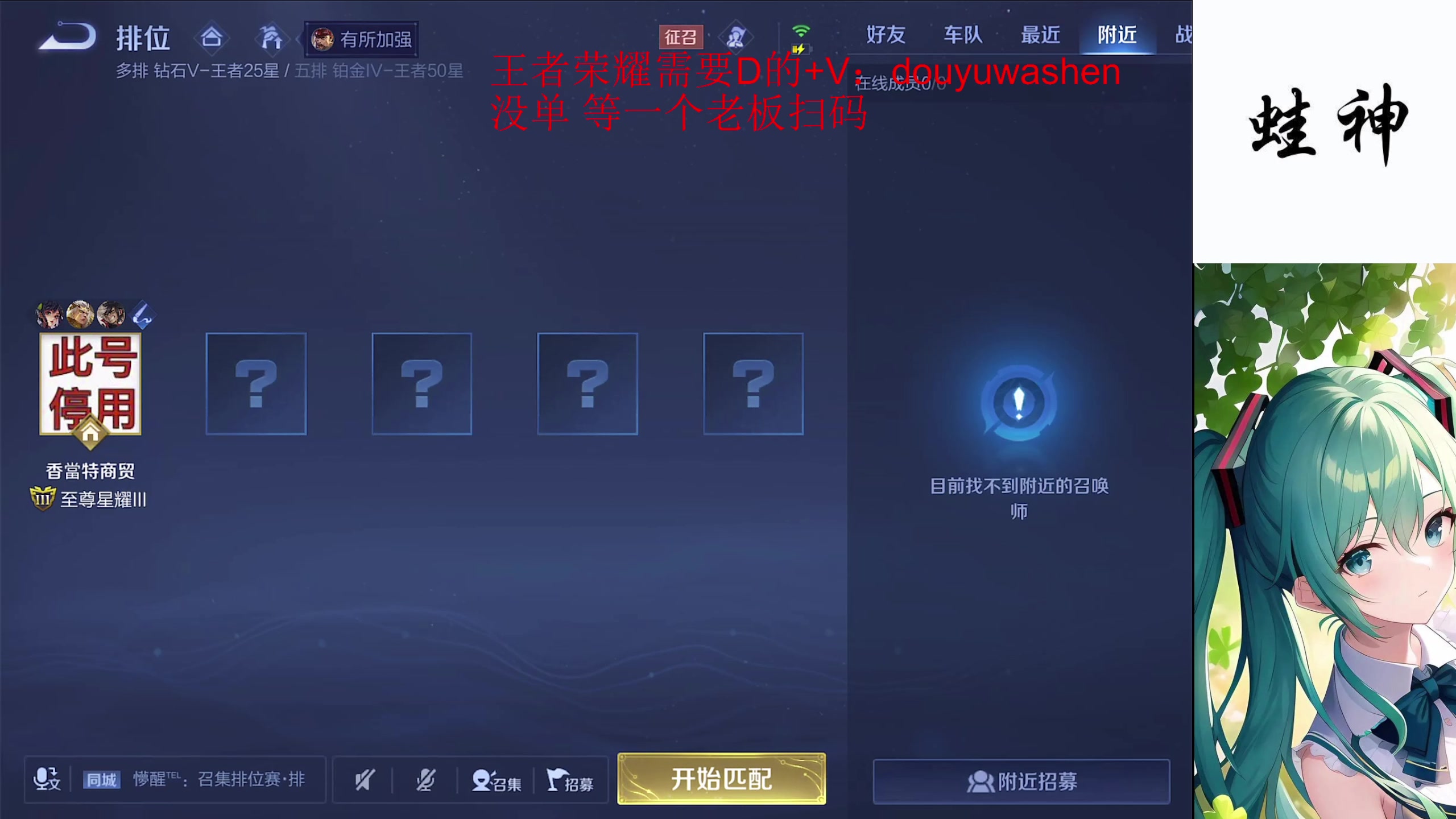 【2026-01-30 18点场】小小青蛙笑i:王者荣耀!!蛙神