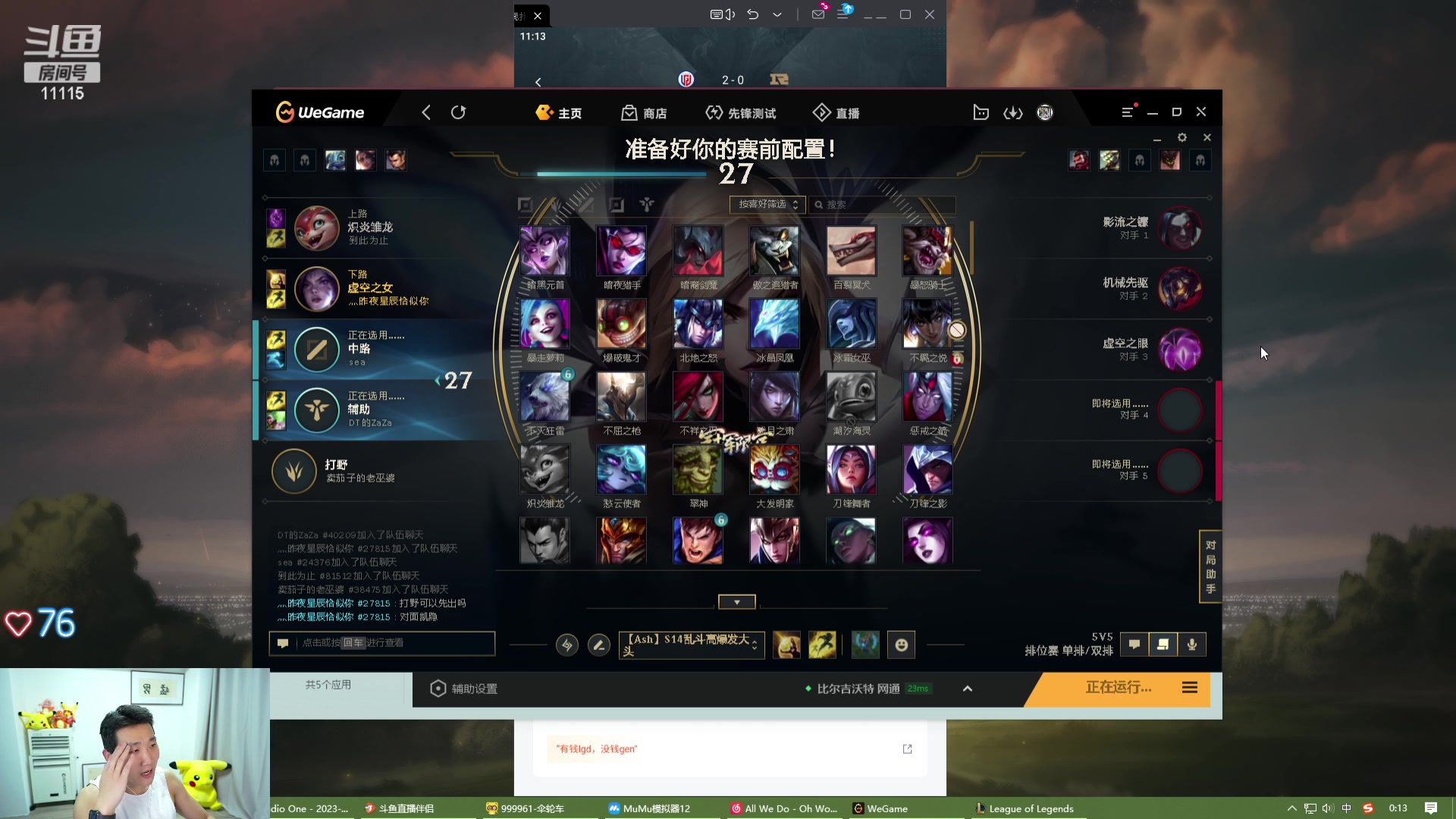 【2026-01-15 22点场】胸肌很大的良小伞:云顶冲王者兄弟们!!!